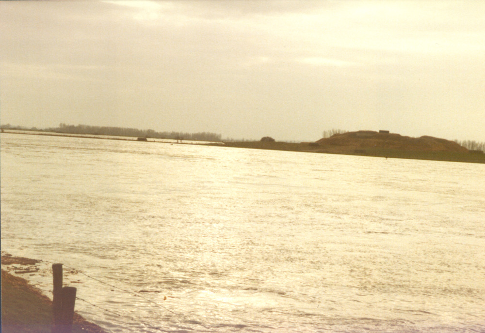 Kleurenfoto van de Rijn met zicht op fort Pannerden ...