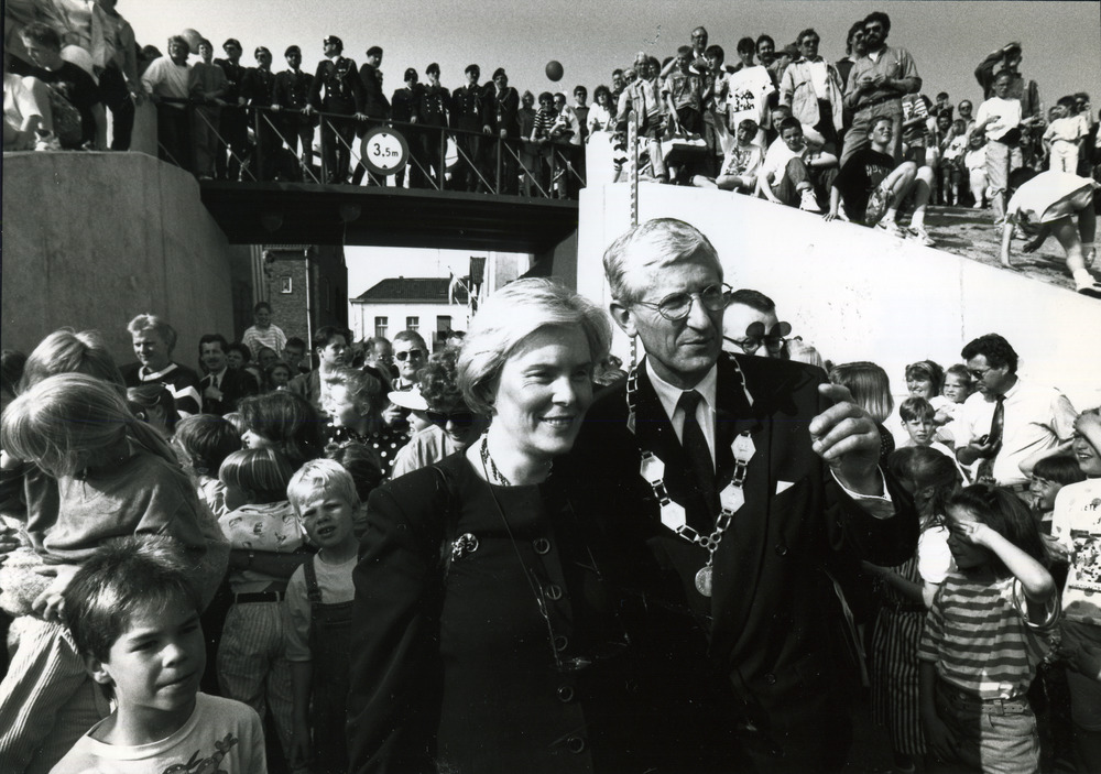 Zwart-wit foto van de opening van de Europakade in T...