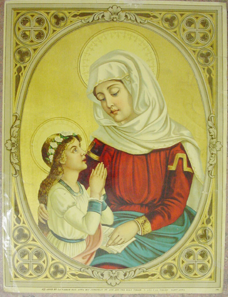Kleurlitho met afbeelding van H. Anna met Maria op p...