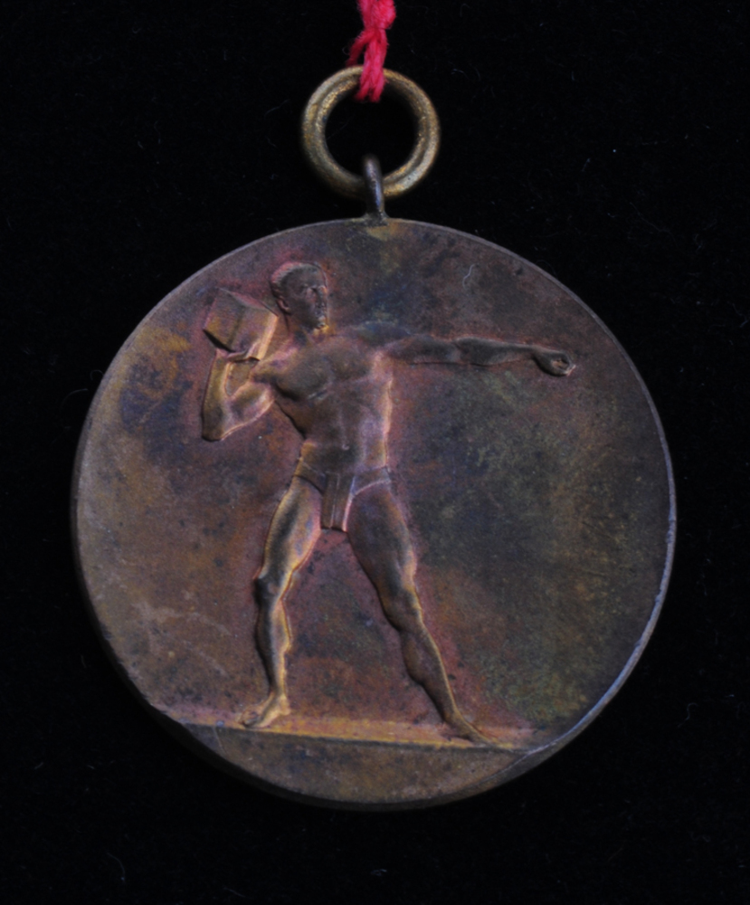 Medaille van metaal voorstellende een werpende atlee...