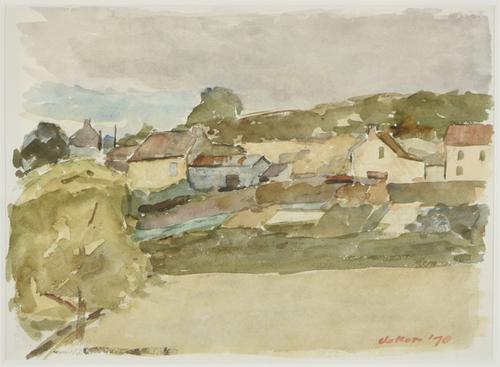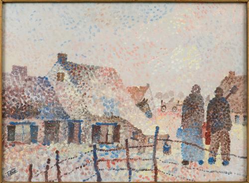 dorpsgezicht met twee figuren