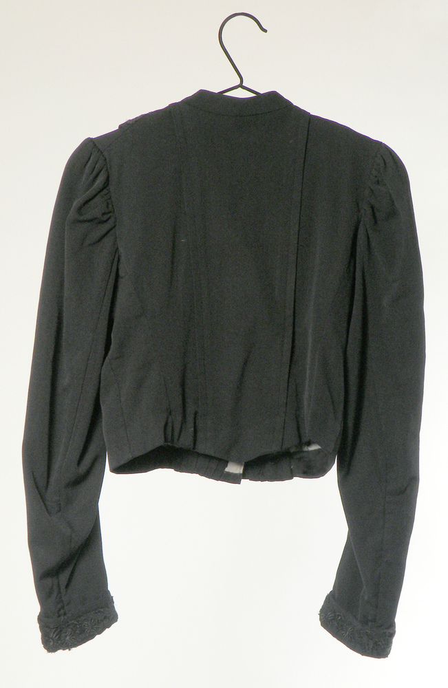 Jak en rok van zwarte stof met een werkje erin
