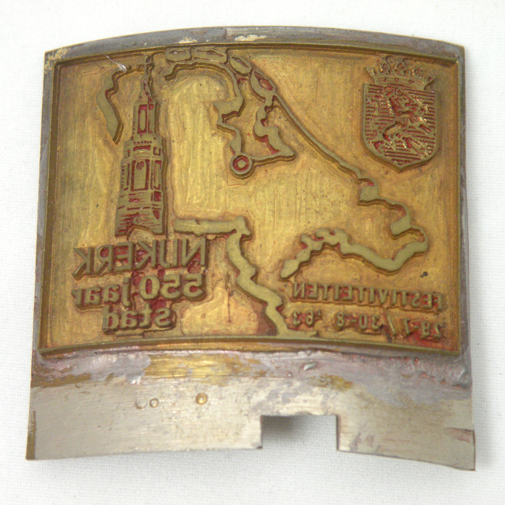 Halfronde stempel met het opschrift ‘Nijkerk 550 jaa...