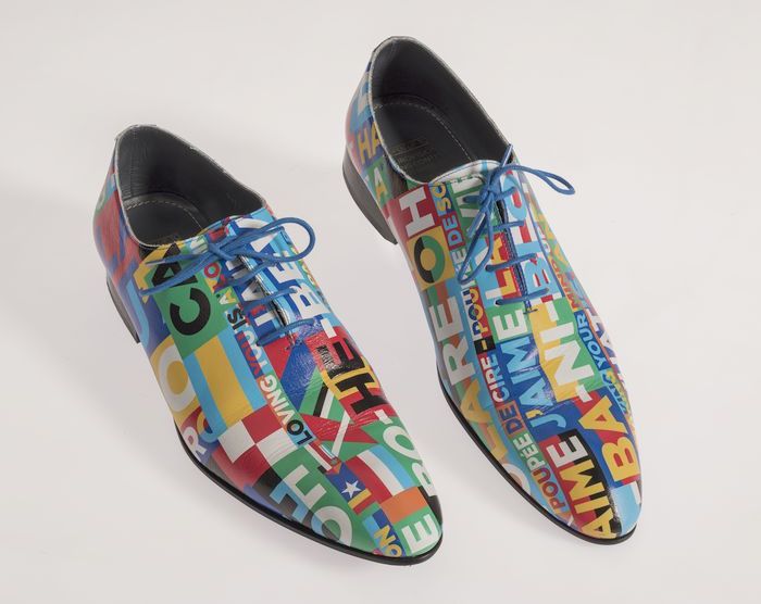 Paar herenschoenen met vetersluiting (blauwe veters)...