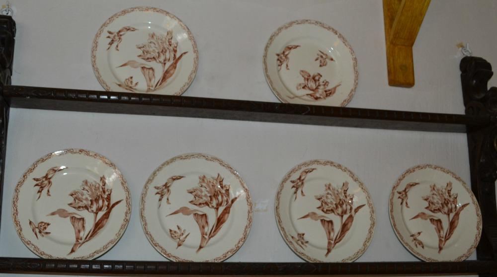 Zes witte borden met bruin decor van vogel en plant