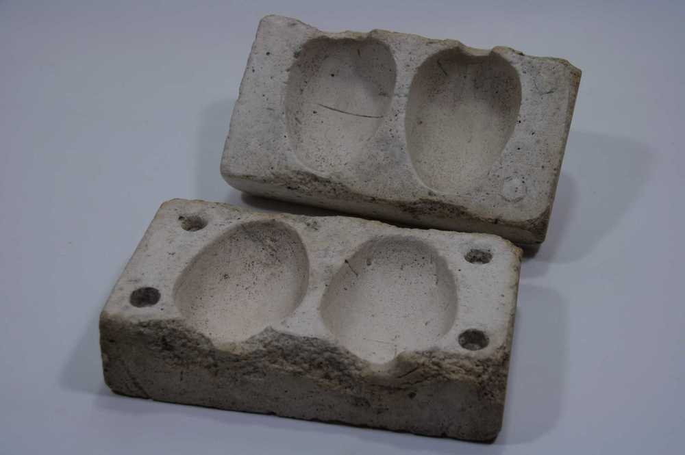 Suikerwerkvorm van gips in de vorm van 2 paaseieren