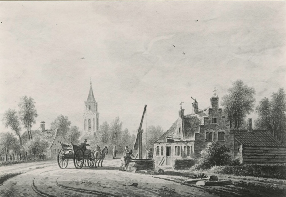 De Dorpsstraat te Drumpt met op de achtergrond de in...