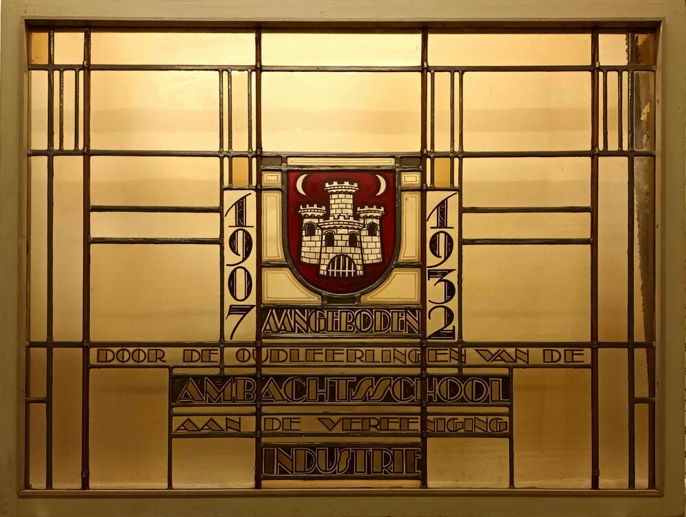 Glas-in-lood raam van de Ambachtsschool te Doesburg