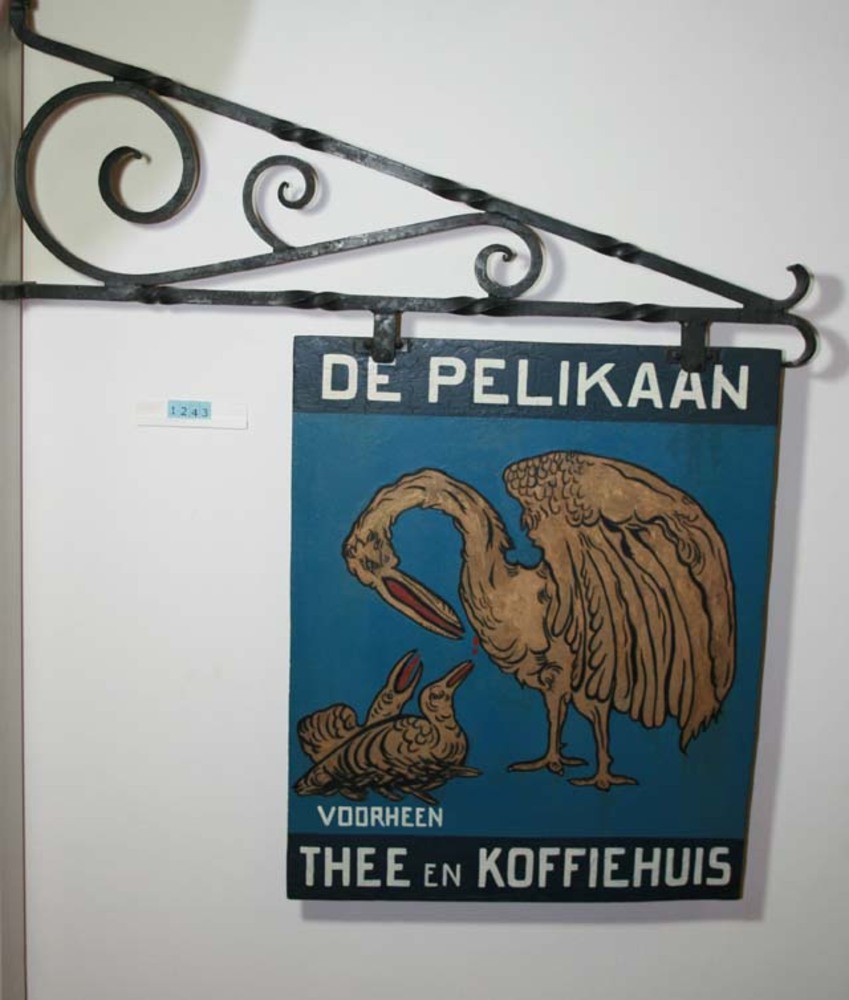uithangbord thee- en koffiehuis De Pelikaan in de Me...