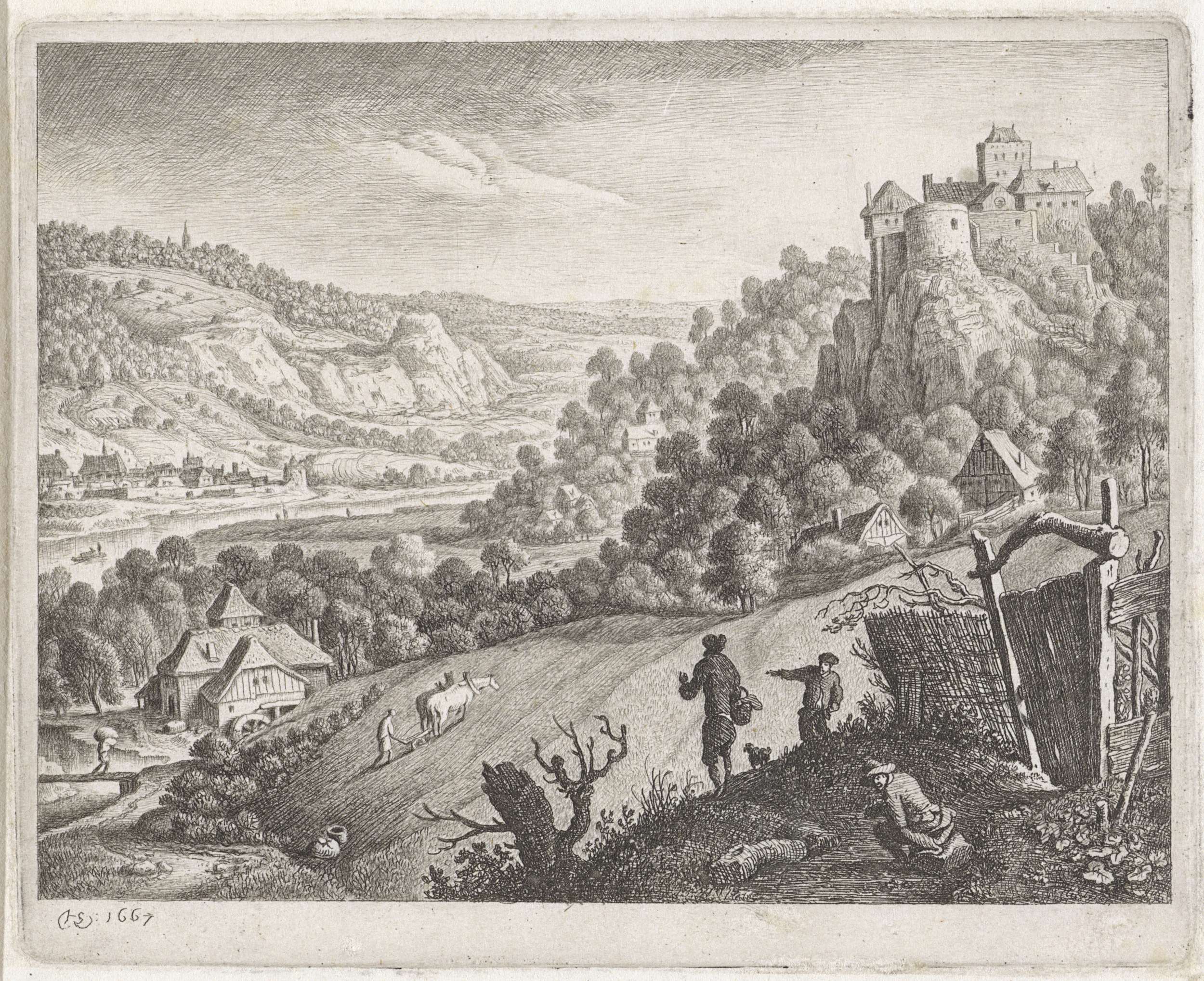 Landschap met een wagen bij een herberg/ Figuren bij...