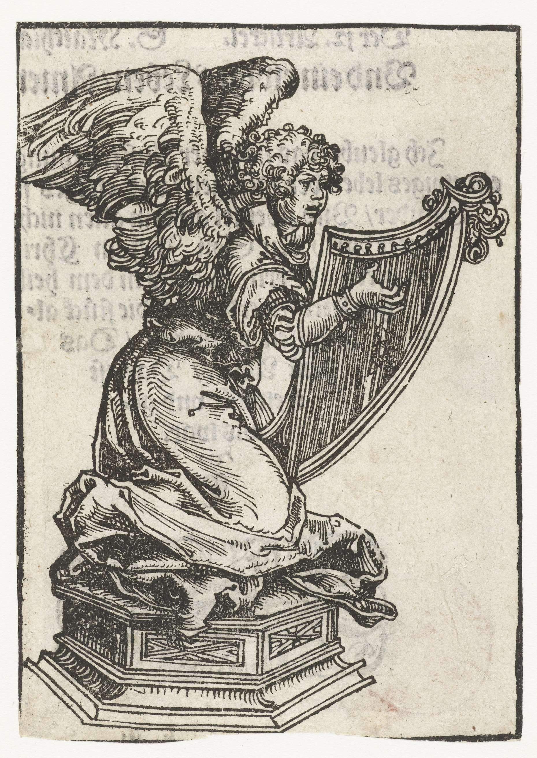 Beeld van knielende engel met harp