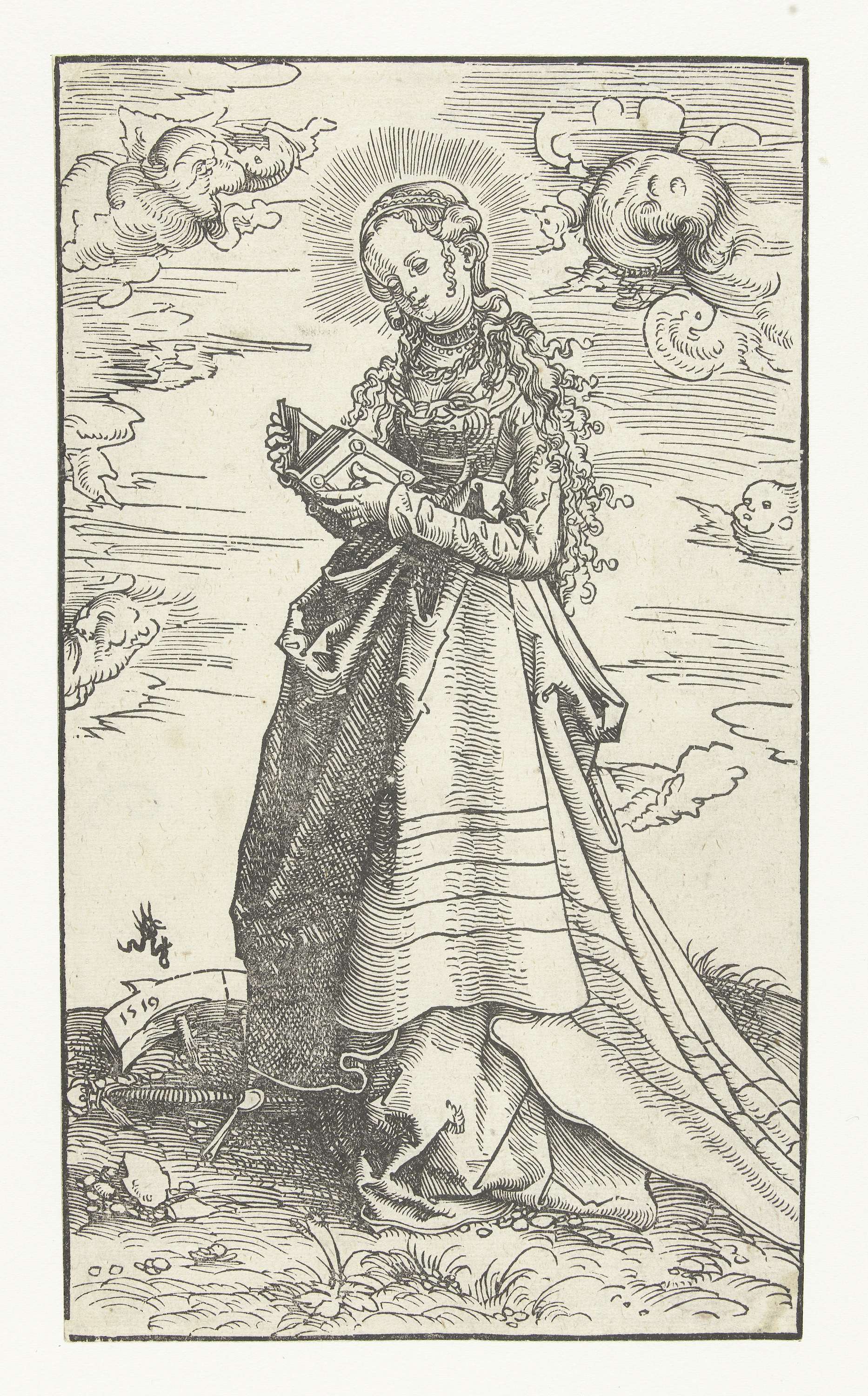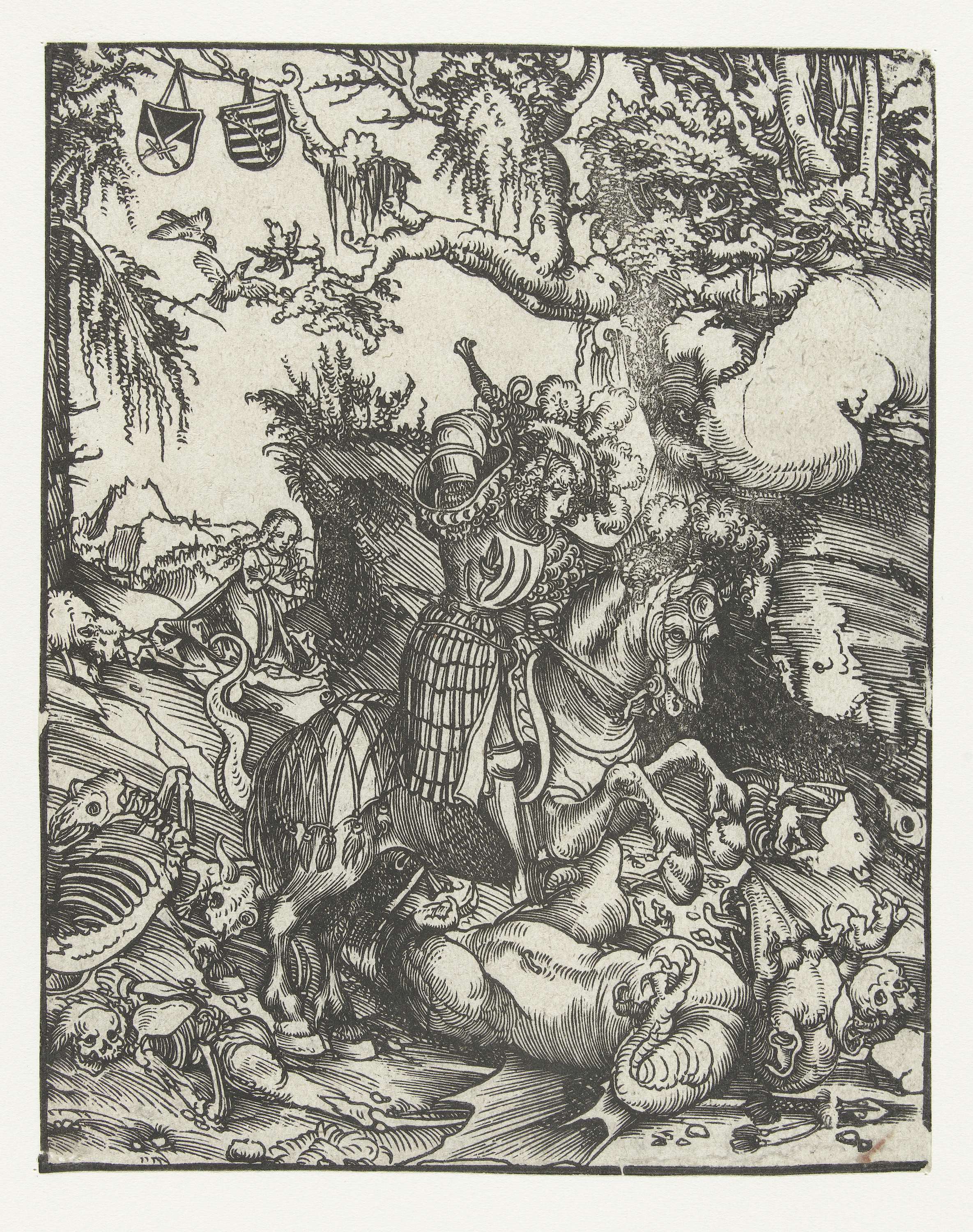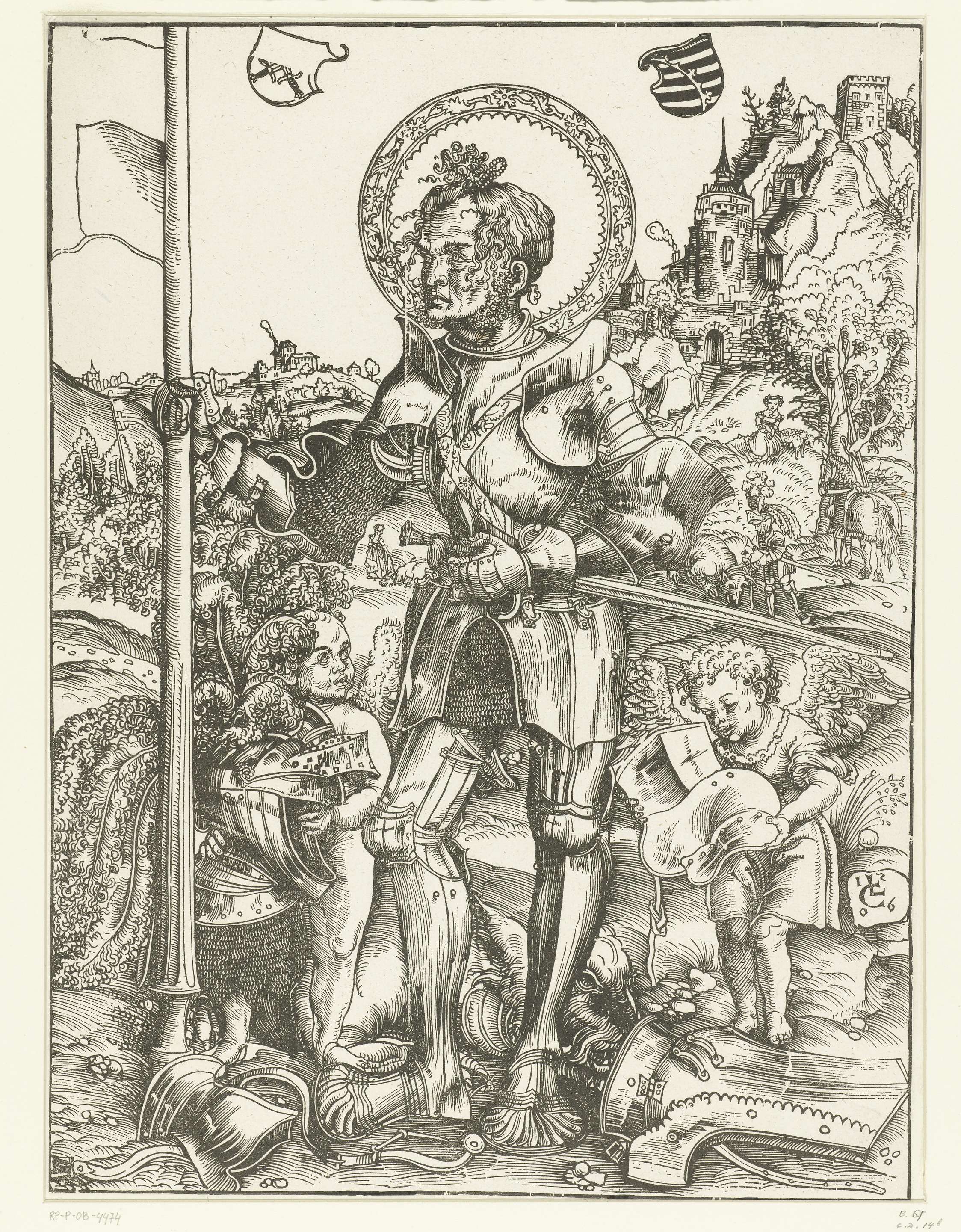 Joris (Georgius) staand met lans en twee engelen
