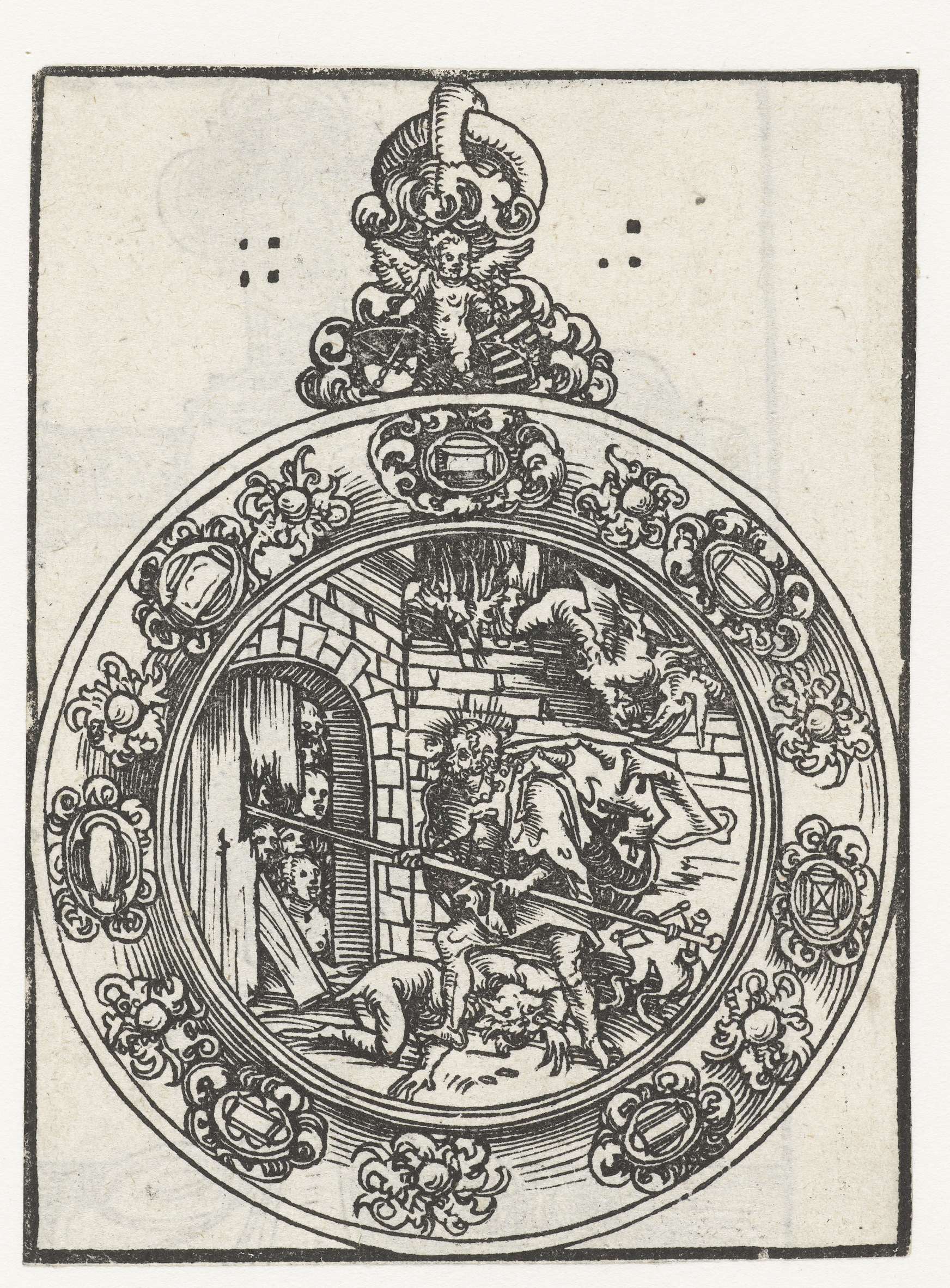 Christuskind als verlosser omringd door engelen met ...