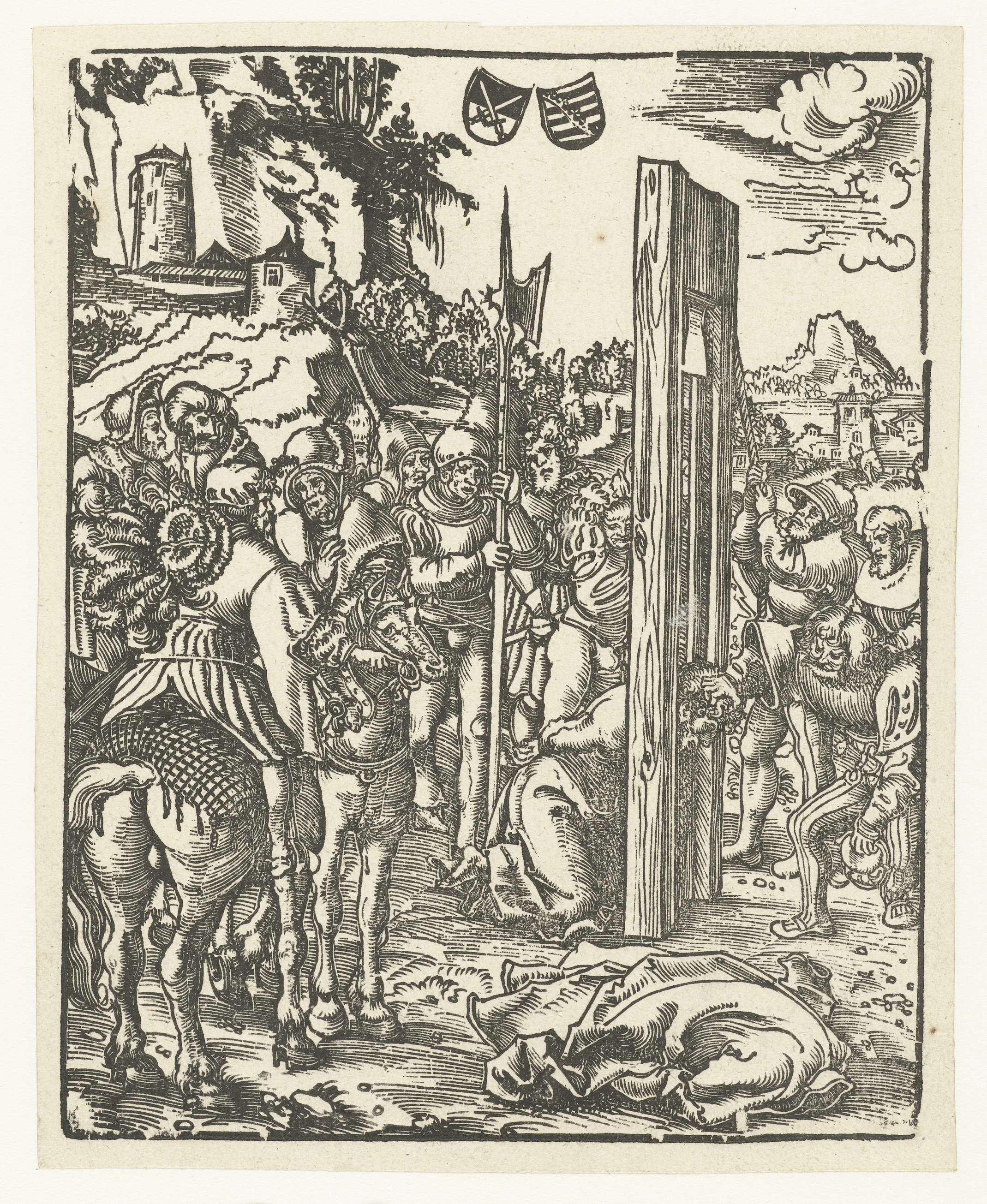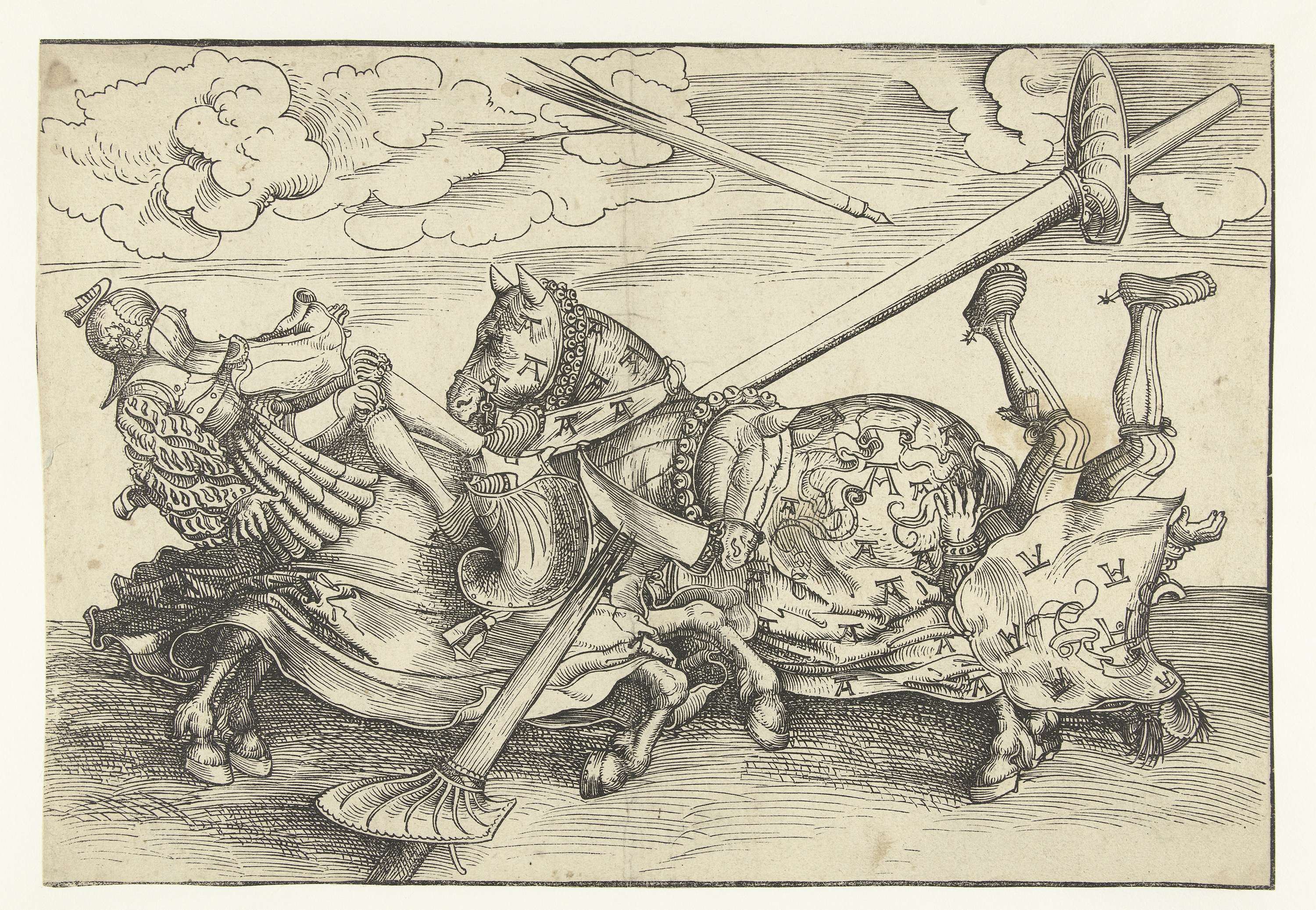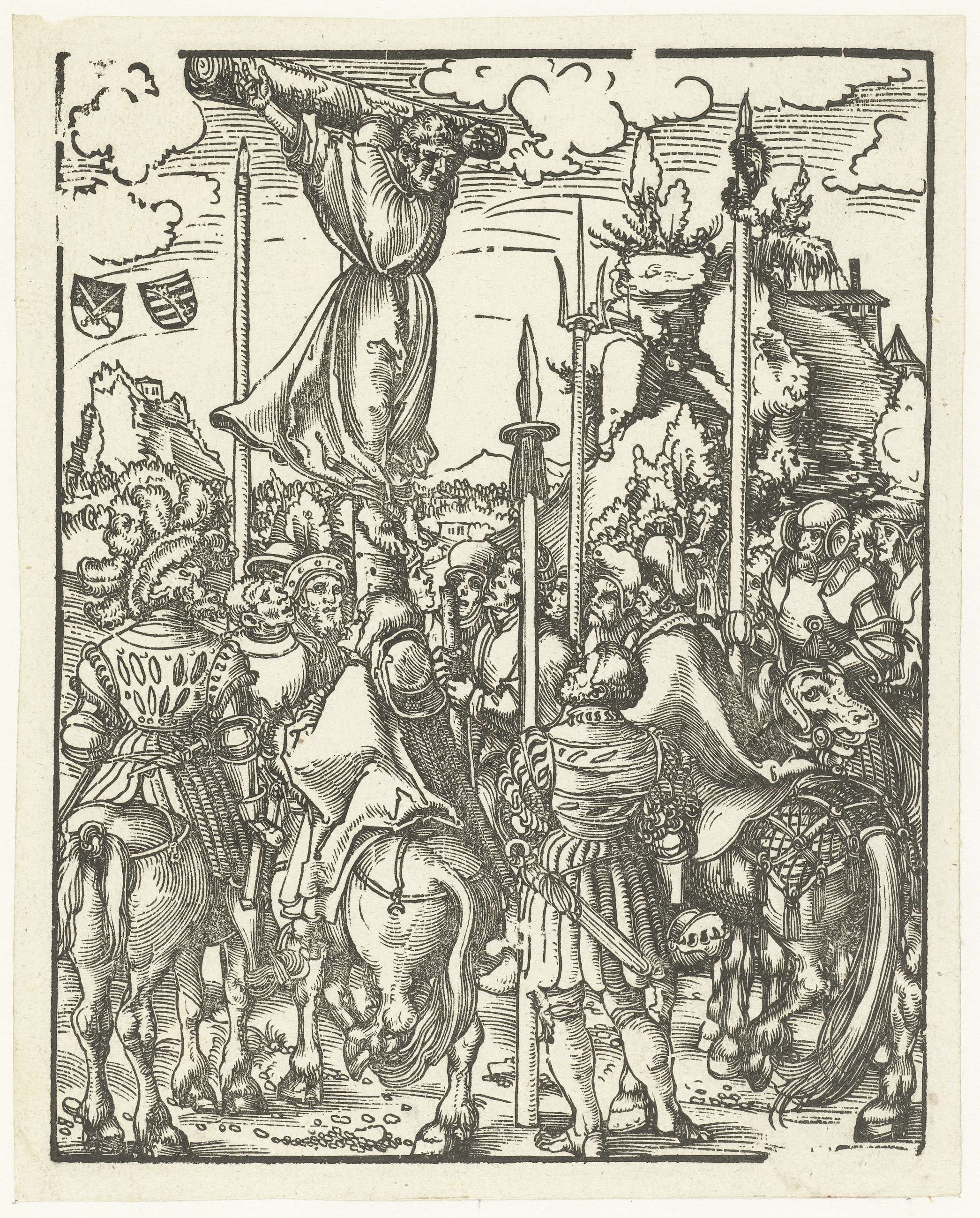 Duits toernooi met twee edelmannen als ridders te paard