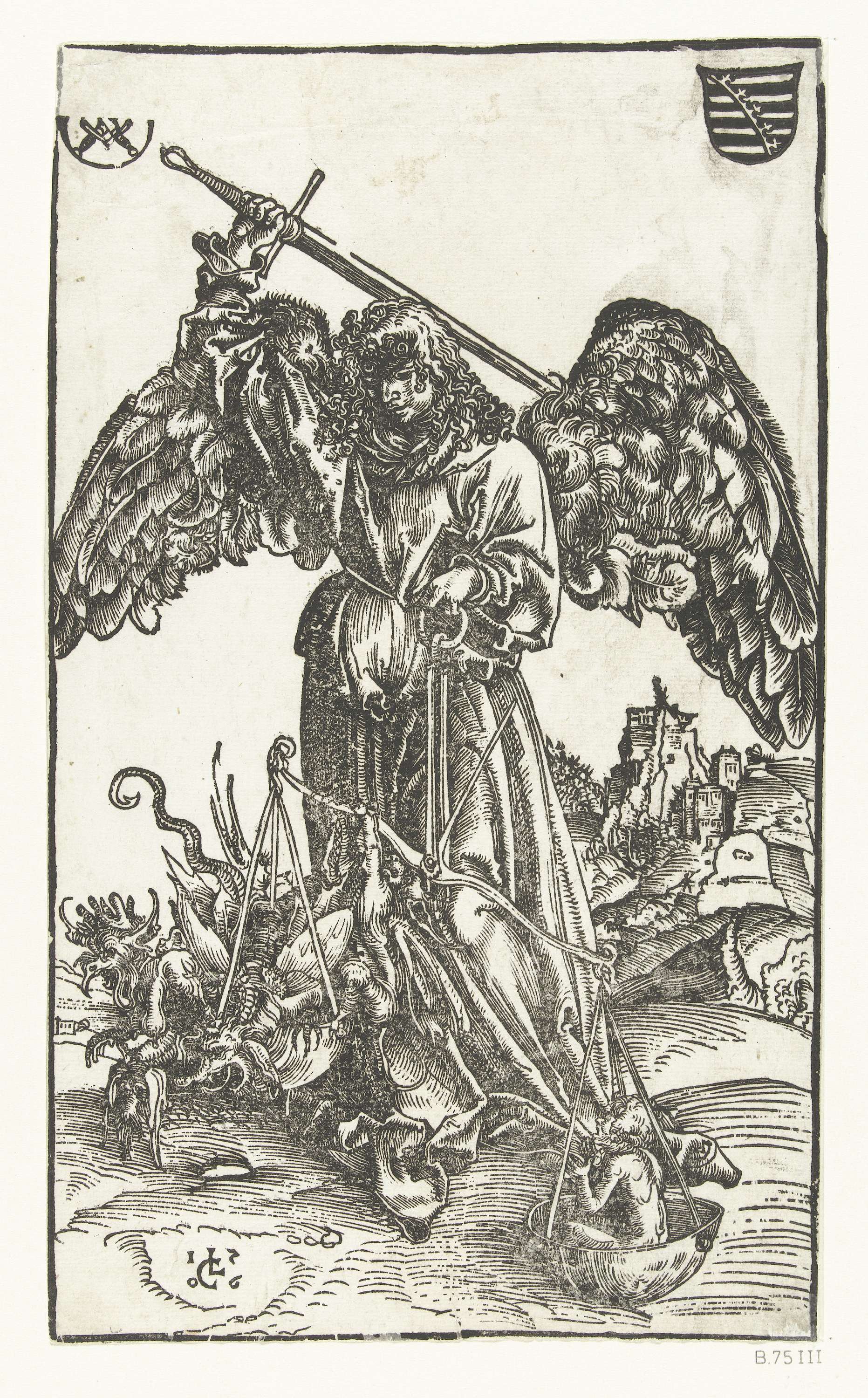 Aartsengel Michaël doodt Satan en weegt een ziel
