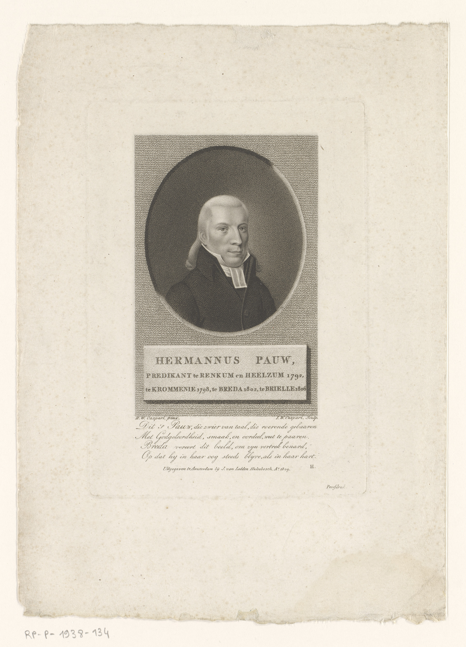 Portret van de predikant Henricus Vos, op 44-jarige ...