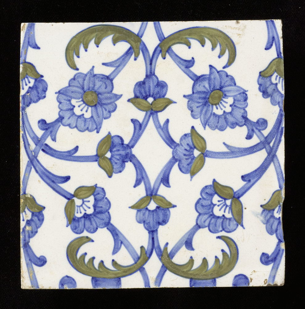 Tegelveld van keramiek, tinglazuur, voorstellende ee...