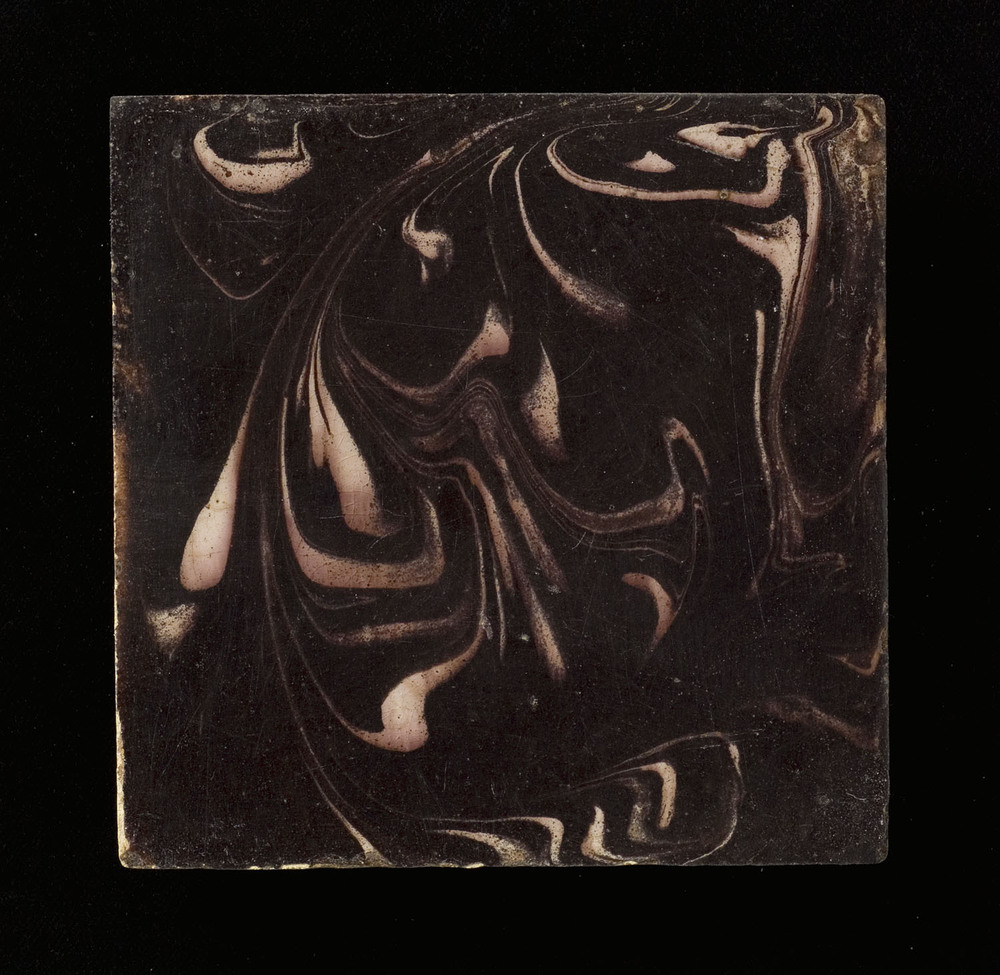 Tegelveld in tinglazuur, voorstellende gevlamde tege...