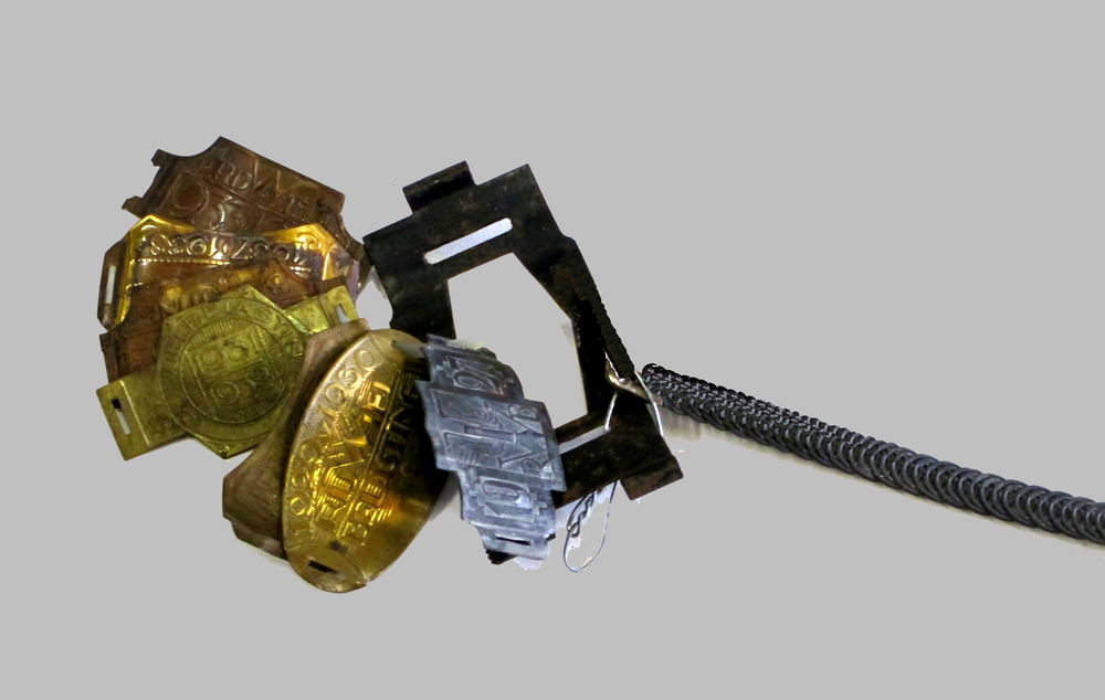 Rijwielbelastingplaten uit 1927 - 1938, met houder e...