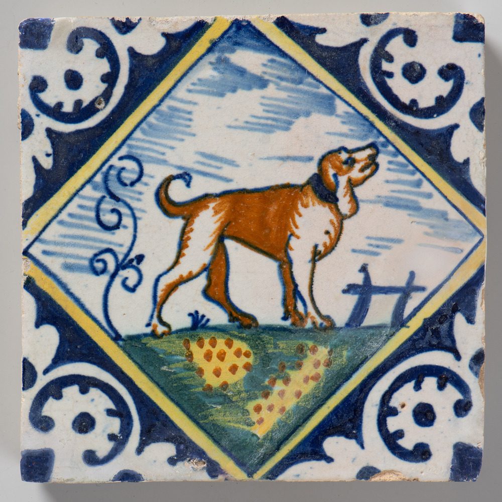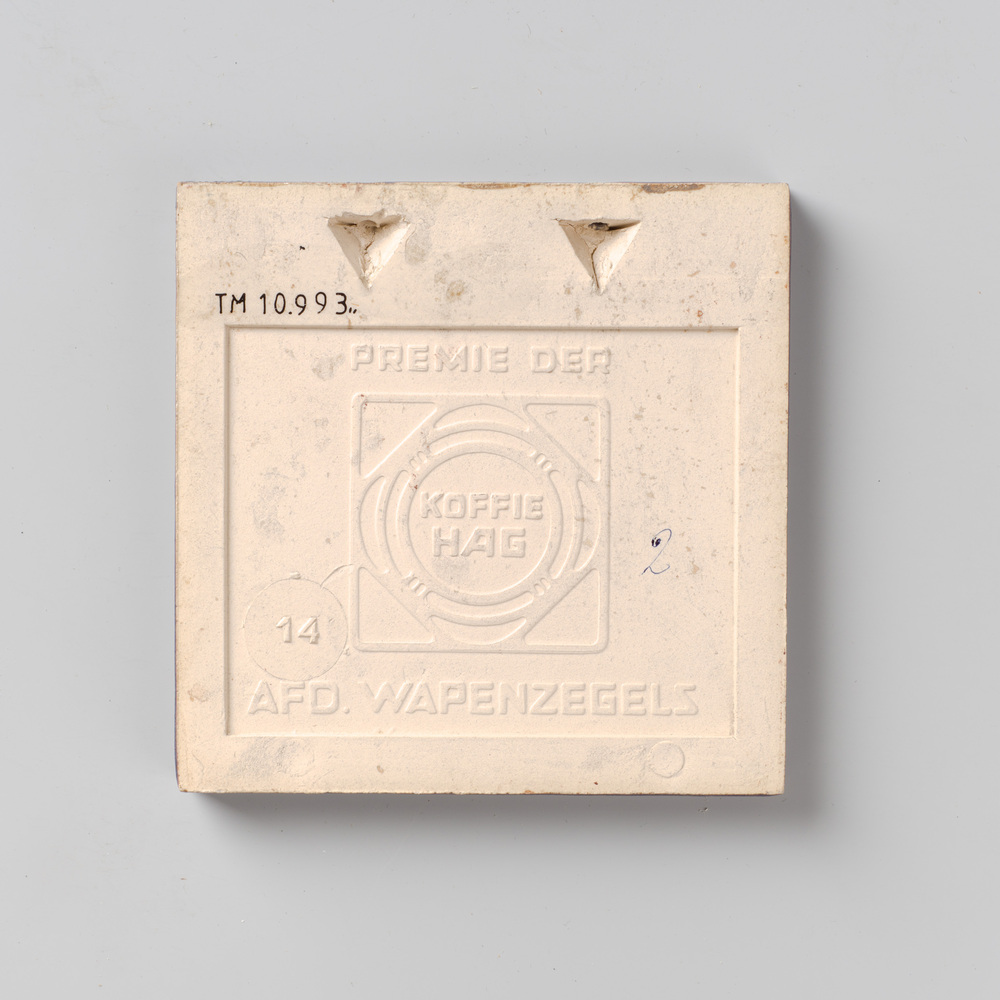 tegel van keramiek met tinglazuur, voorstellende: le...