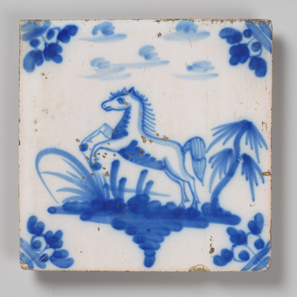 tegel van aardewerk met tinglazuur, voorstellende: p...