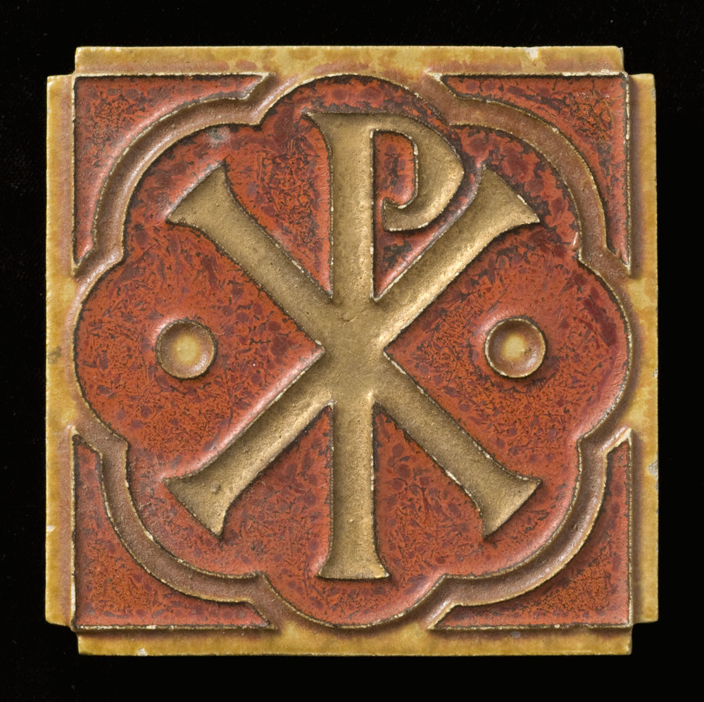 Tegel van keramiek met tinglazuur, voorstellende: or...