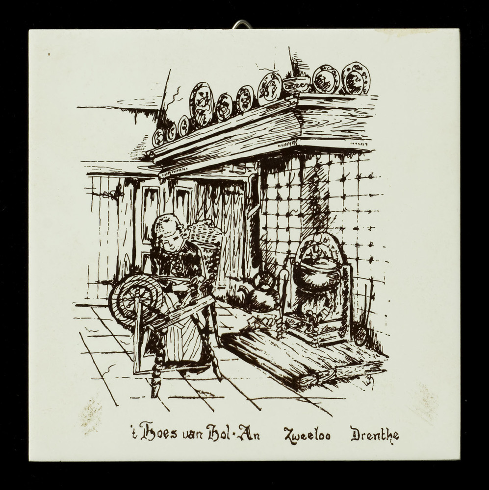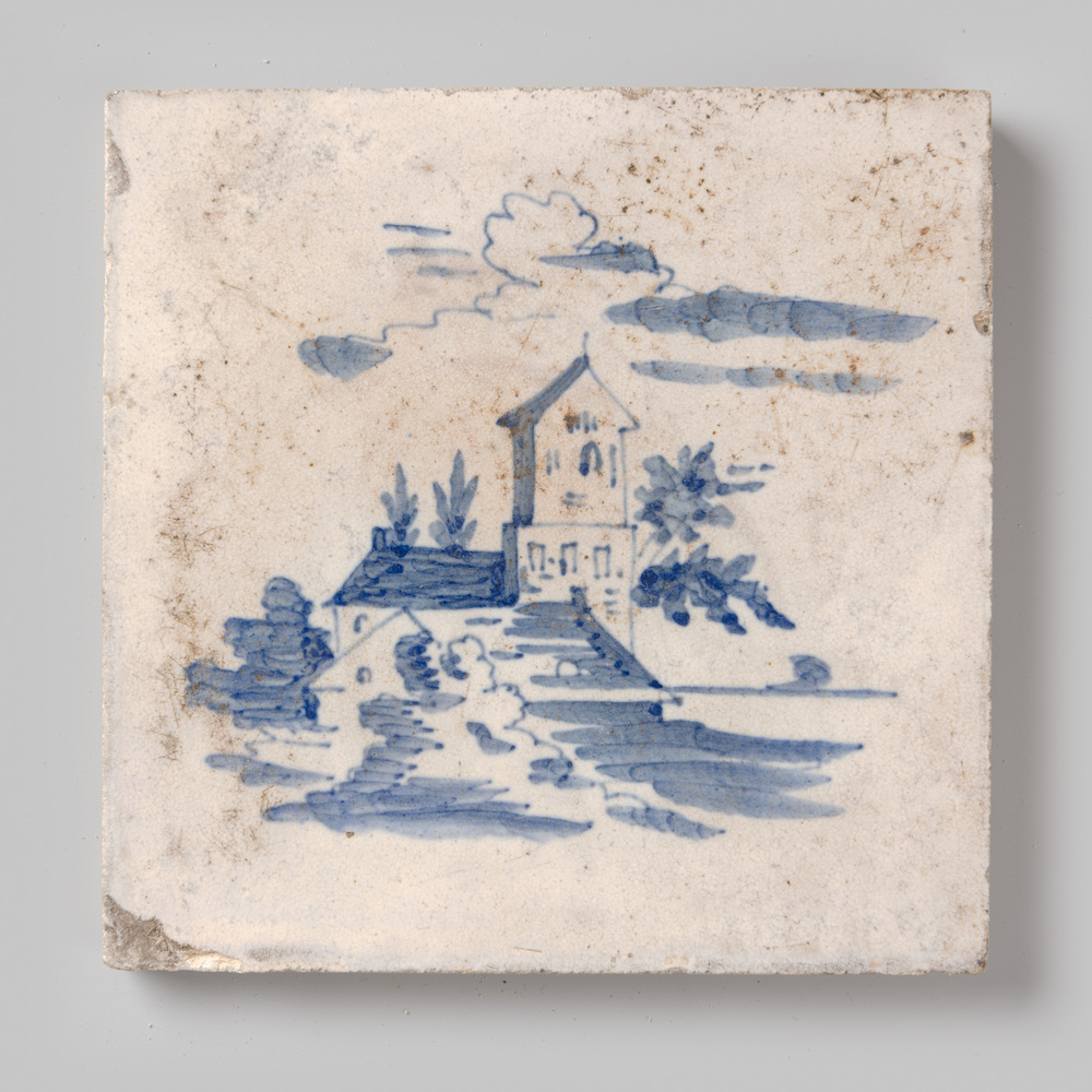 tegel van aardewerk in onderglazuur, voorstellende: ...