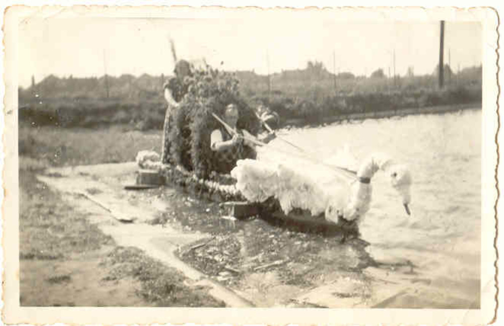 Heideweek 1937 - Versierde kano in de kanovijver op ...