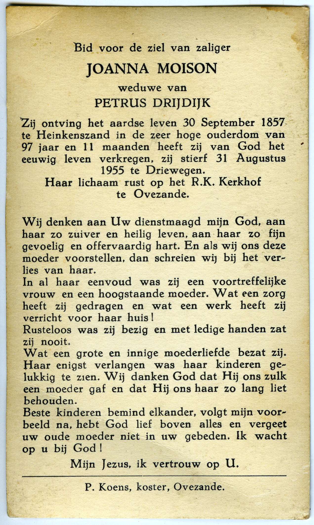 Bidprentje van Joanna Moison, 1955 (bidprentje)