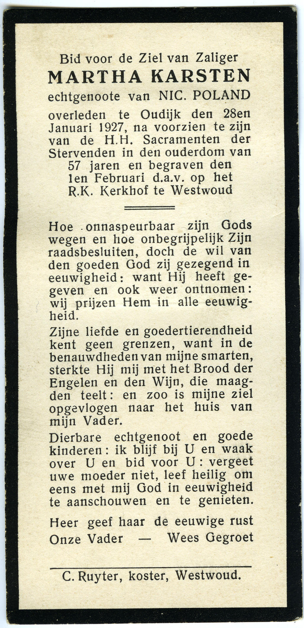 Bidprentje van Martha Karsten, 1927 (bidprentje)