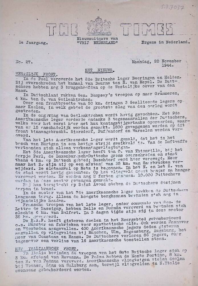 The Times, Nieuwsuitgave van 'Vrij Nederland', 1e ja...