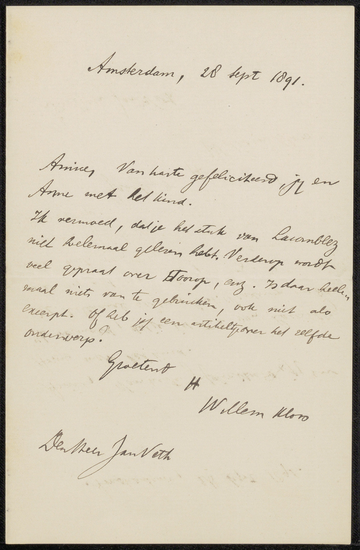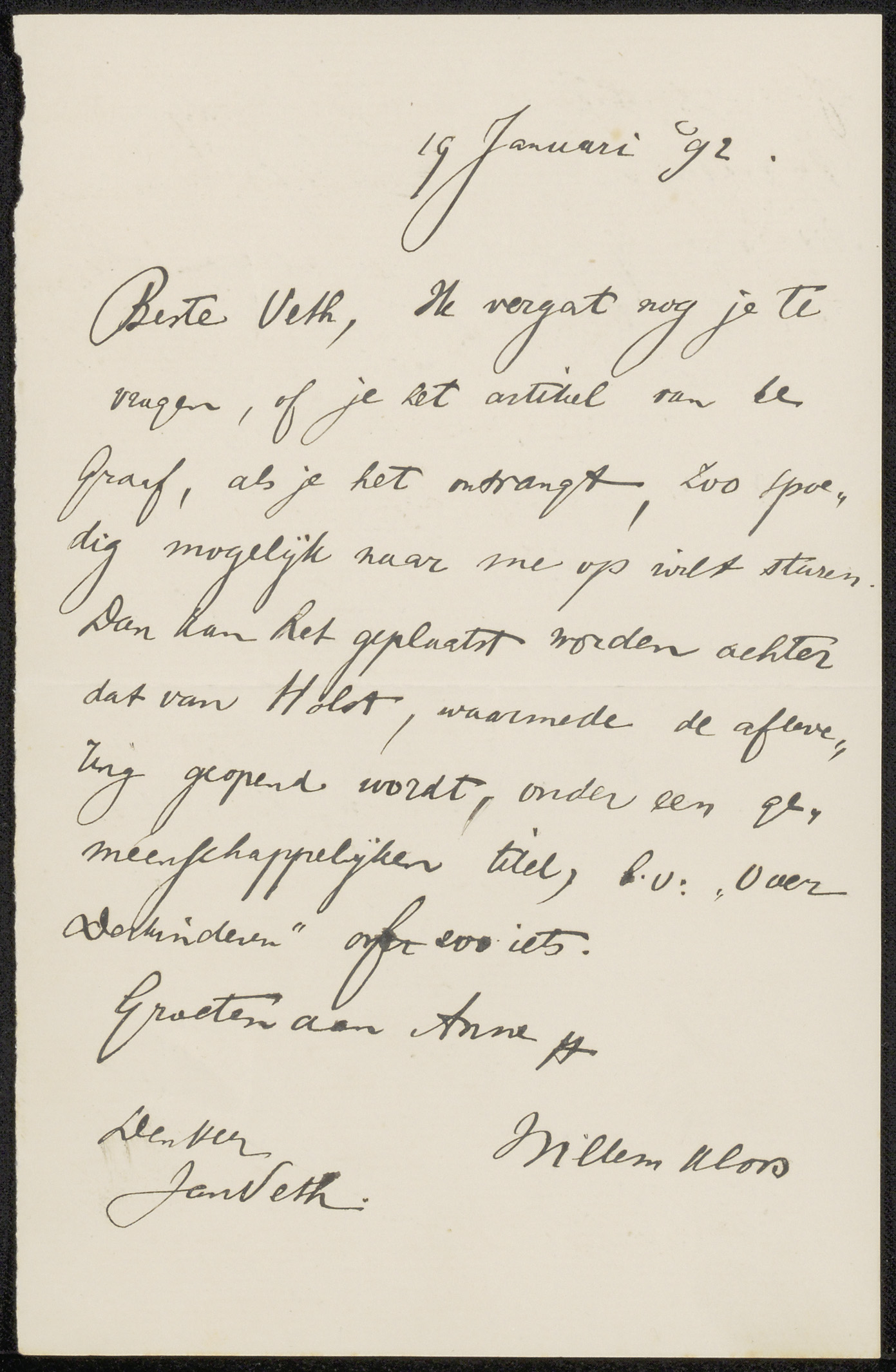 Brief aan Jan Veth