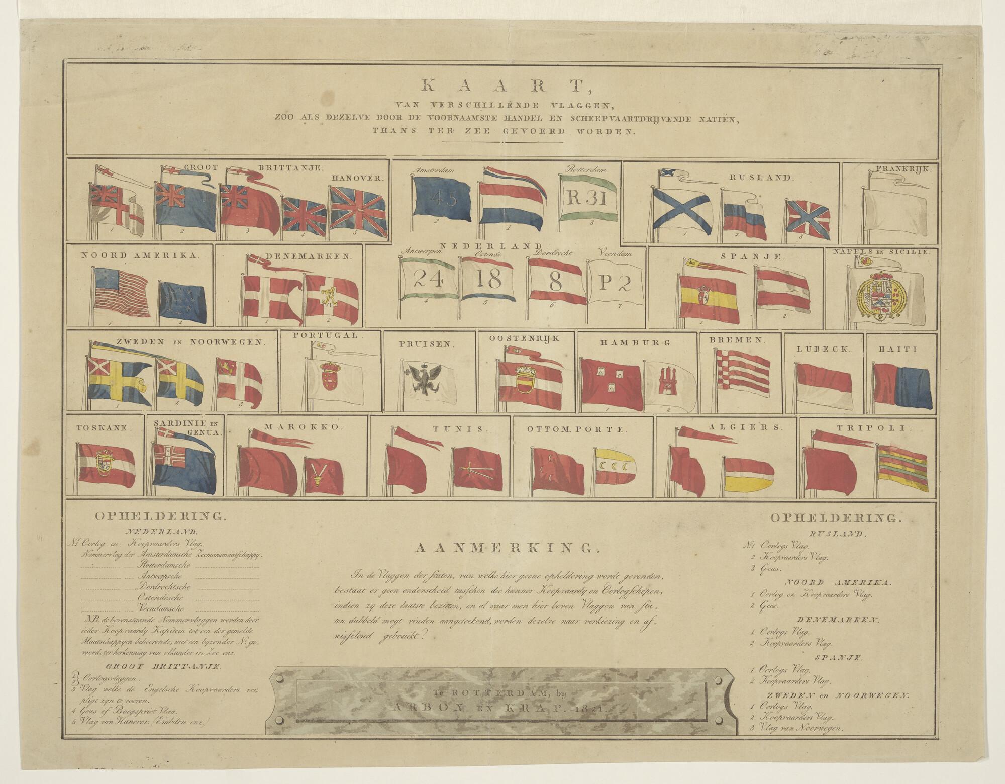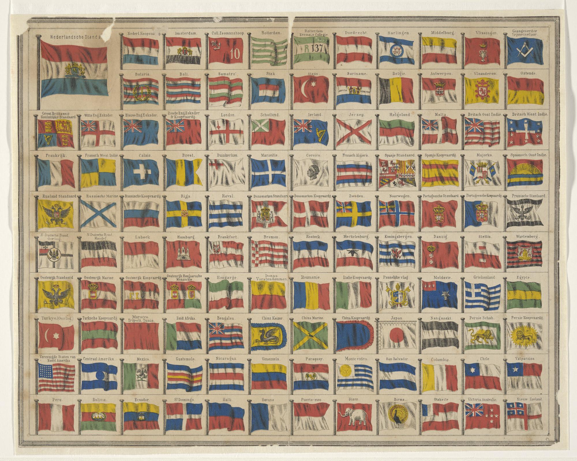 Vlaggenkaart met ingekleurde vlaggen van zeevarende ...
