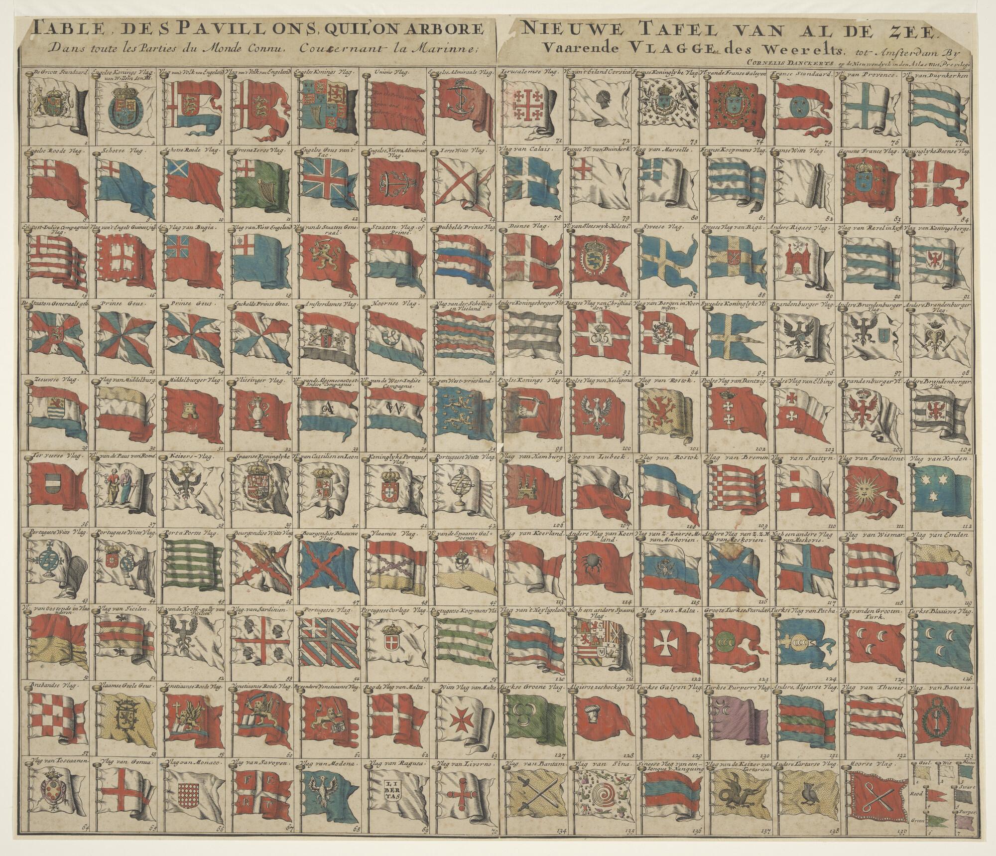 Vlaggenkaart met 139 genummerde vlaggen van zeevaren...