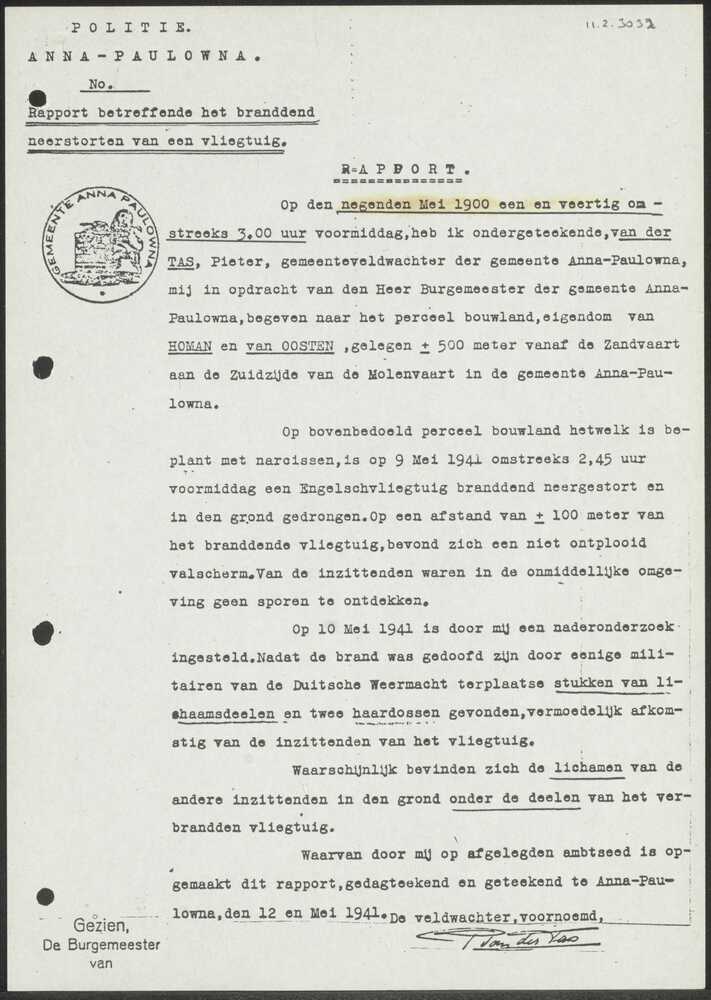 Proces-Verbaal Politie Anna-Paulowna 12-05-1941.