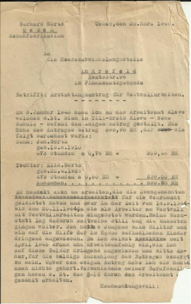 Brief van Gerhard Görtz uit Eudem aan de Heeresabwic...