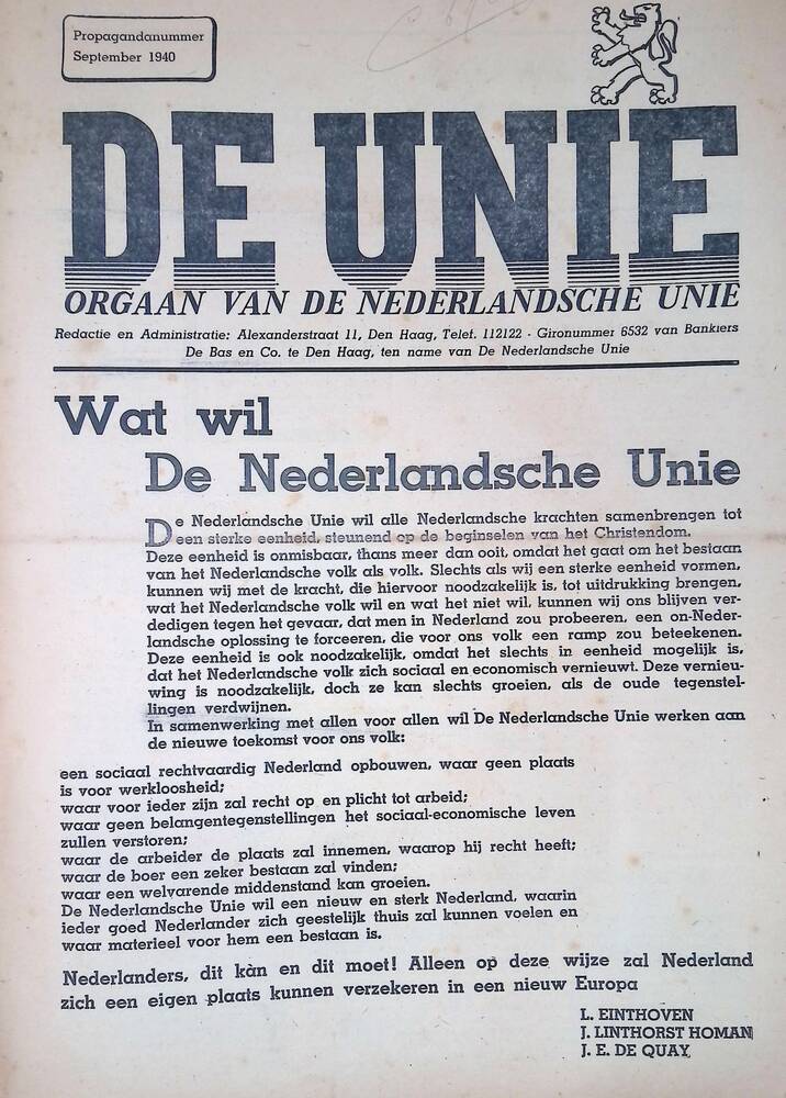 De Unie, Orgaan van de Nederlandsche Unie, nummer 1-...