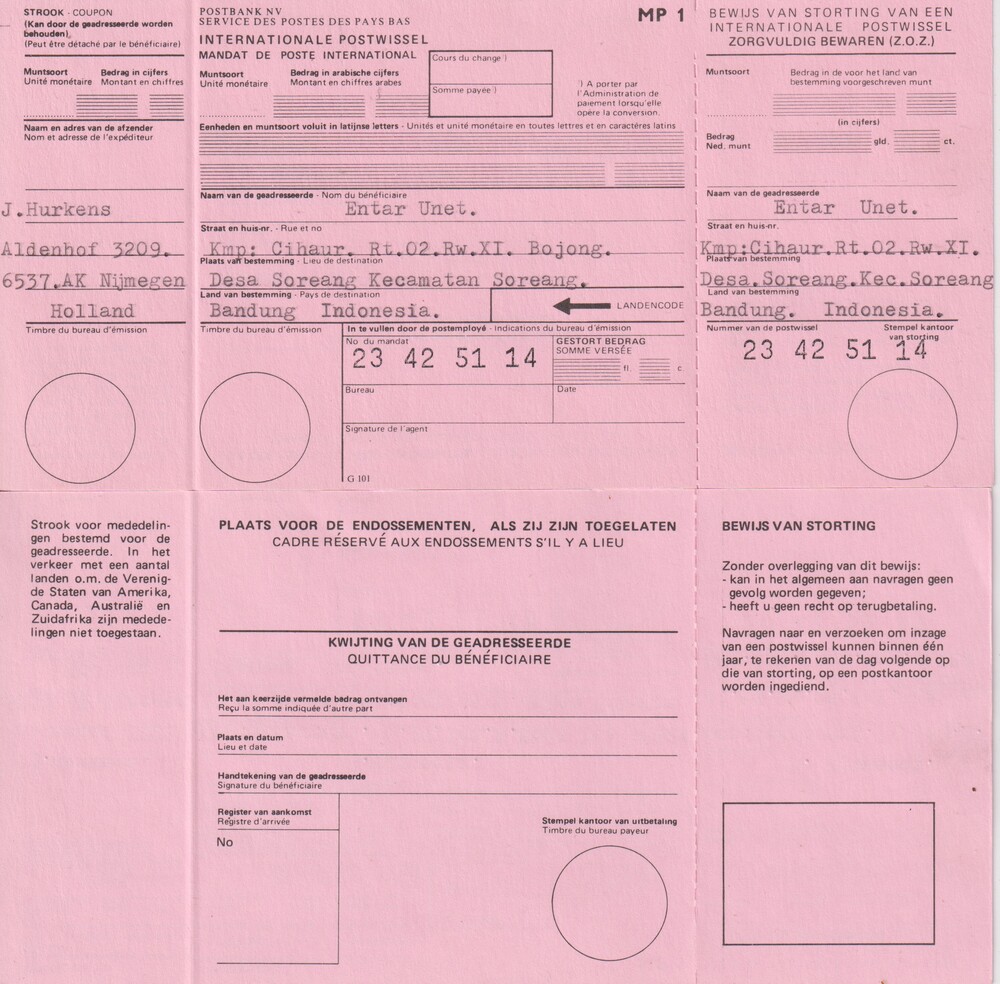 Stortingsformulieren J. Hurkens Nijmegen Holland