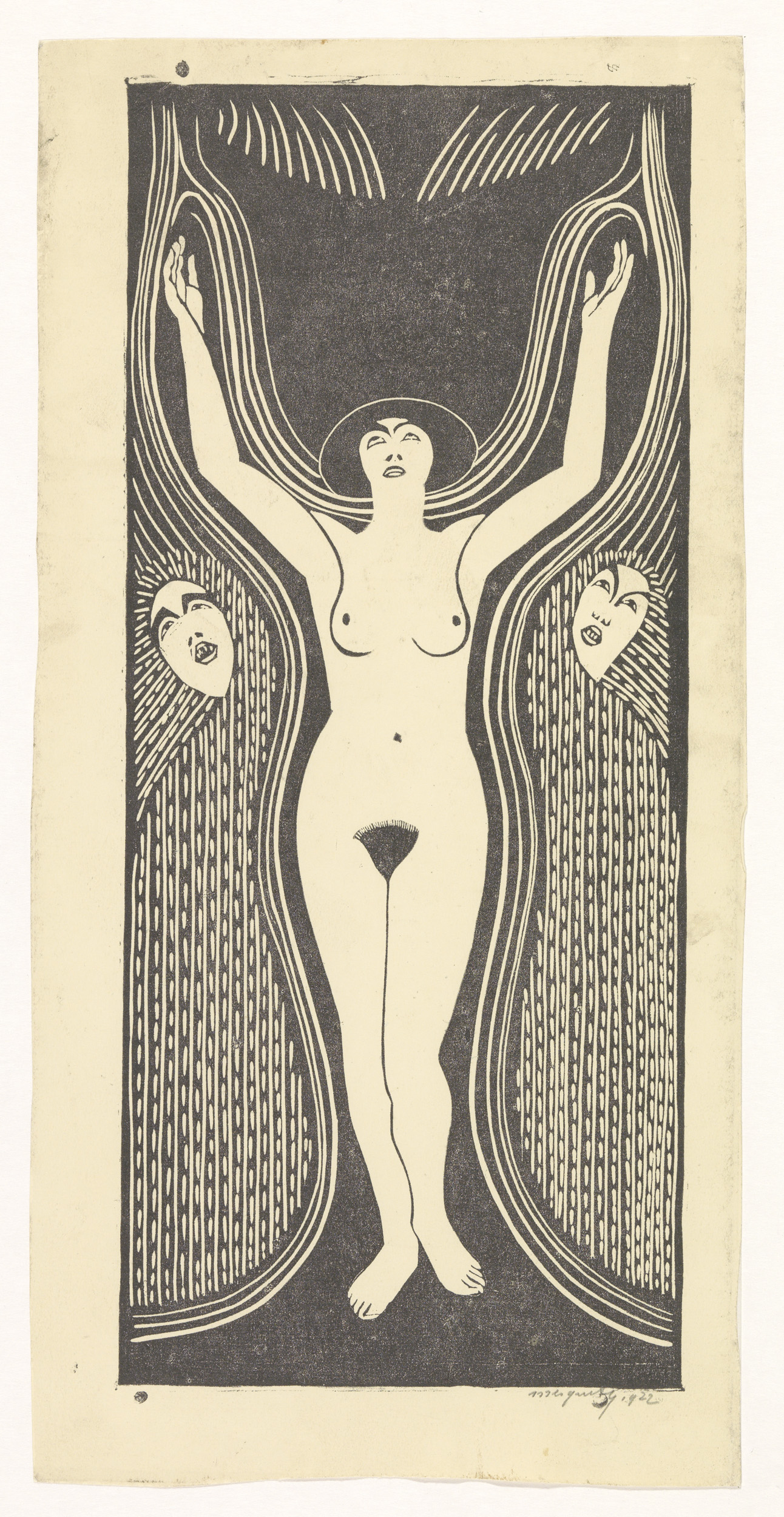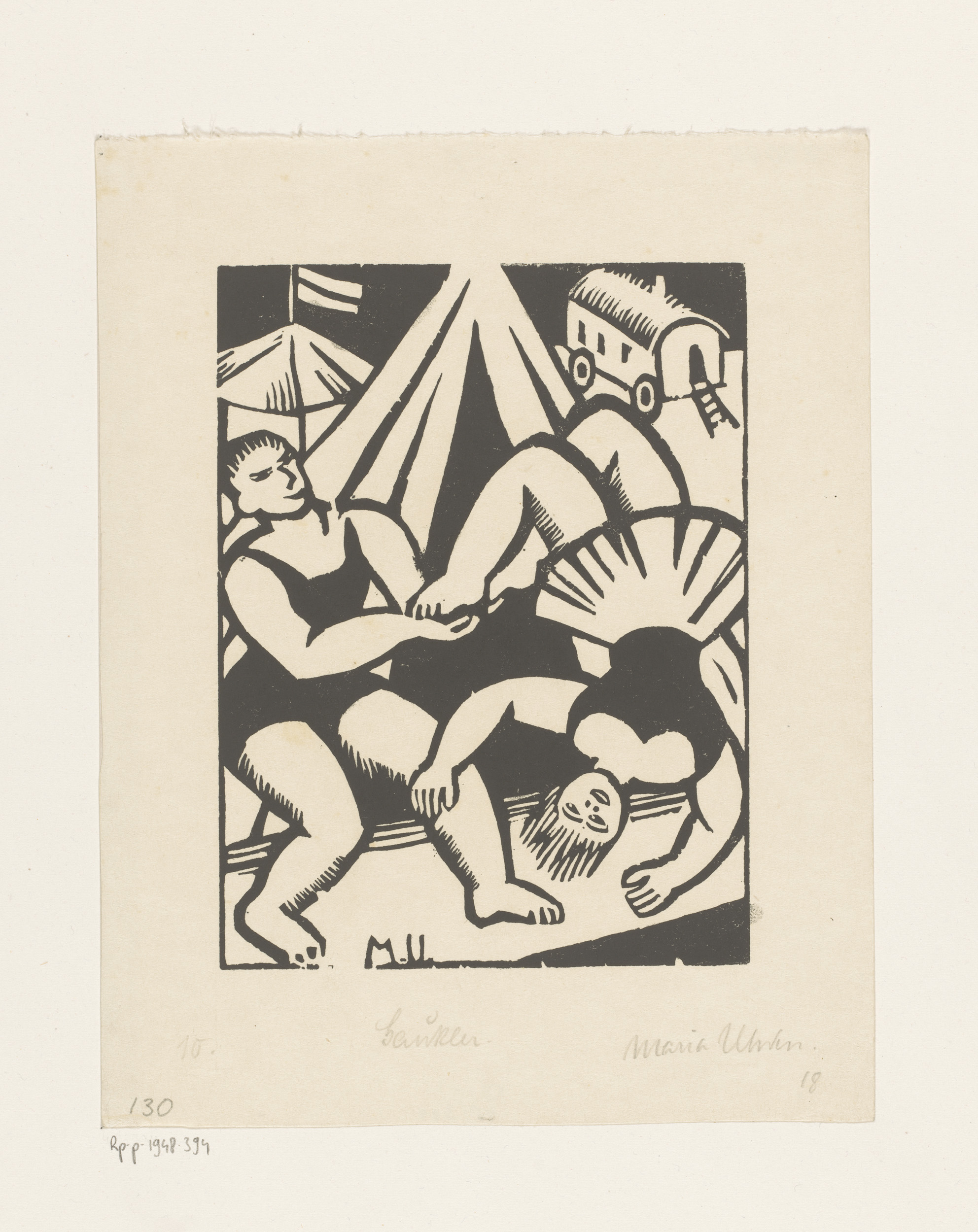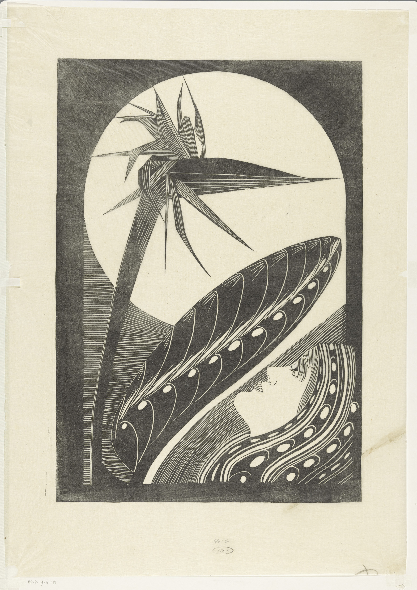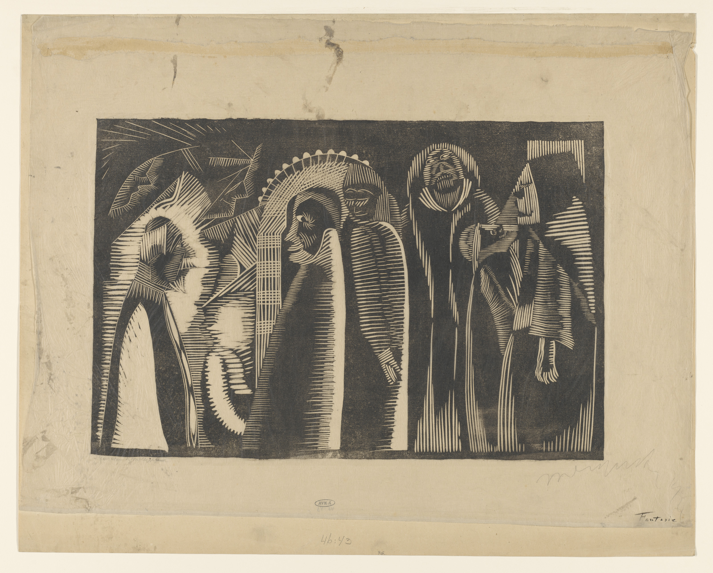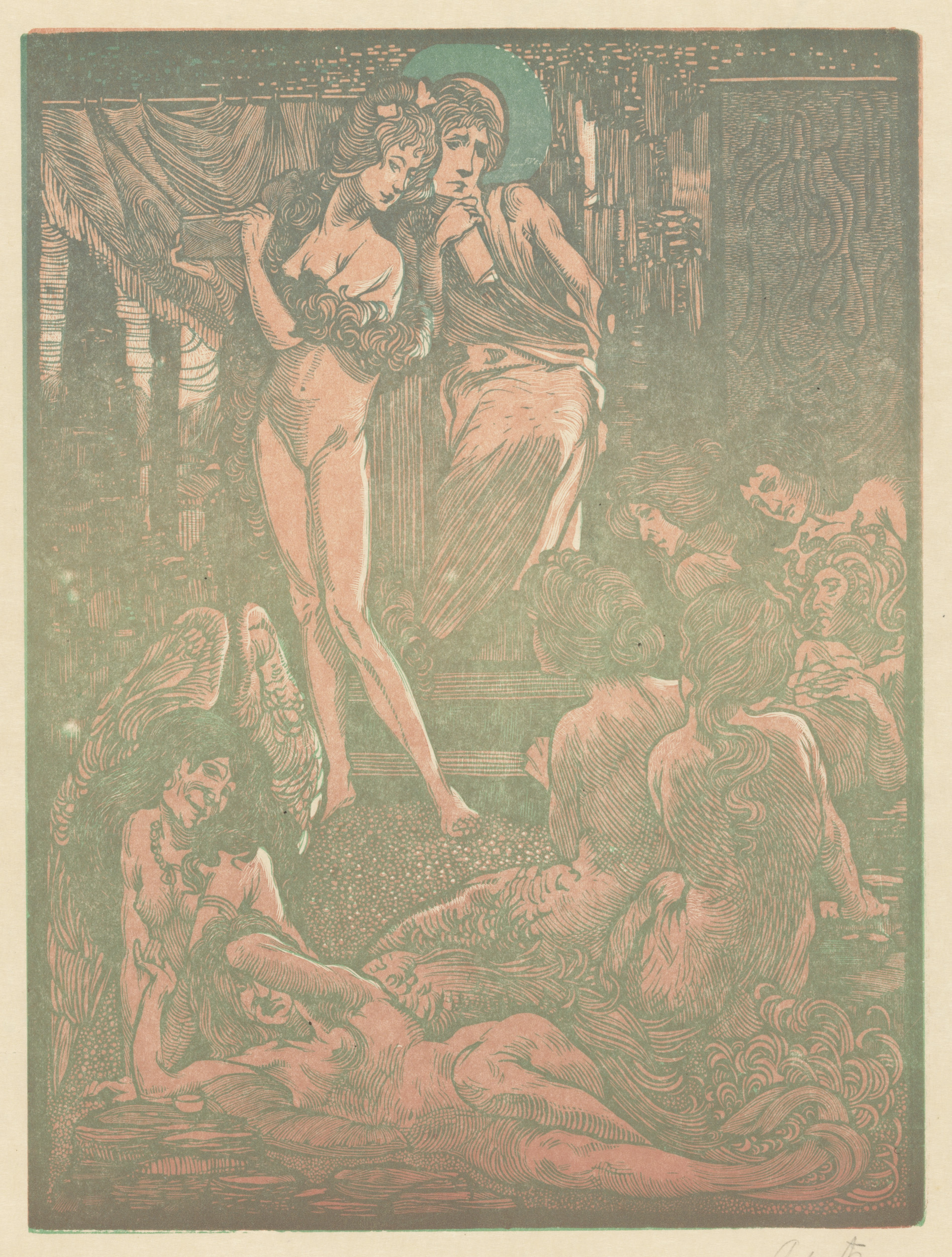 Fantasie: twee mannenkoppen in profiel naar links, l...