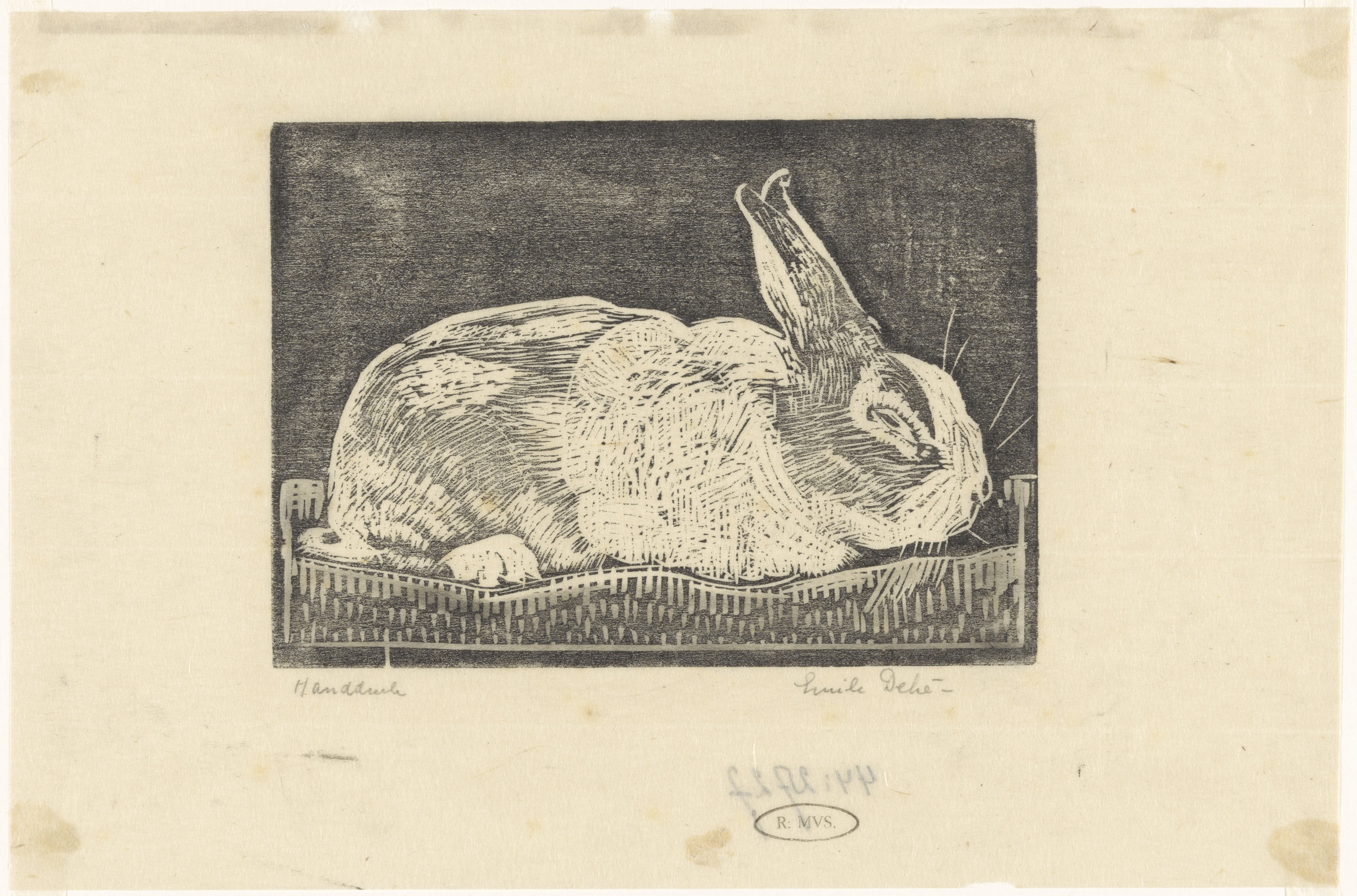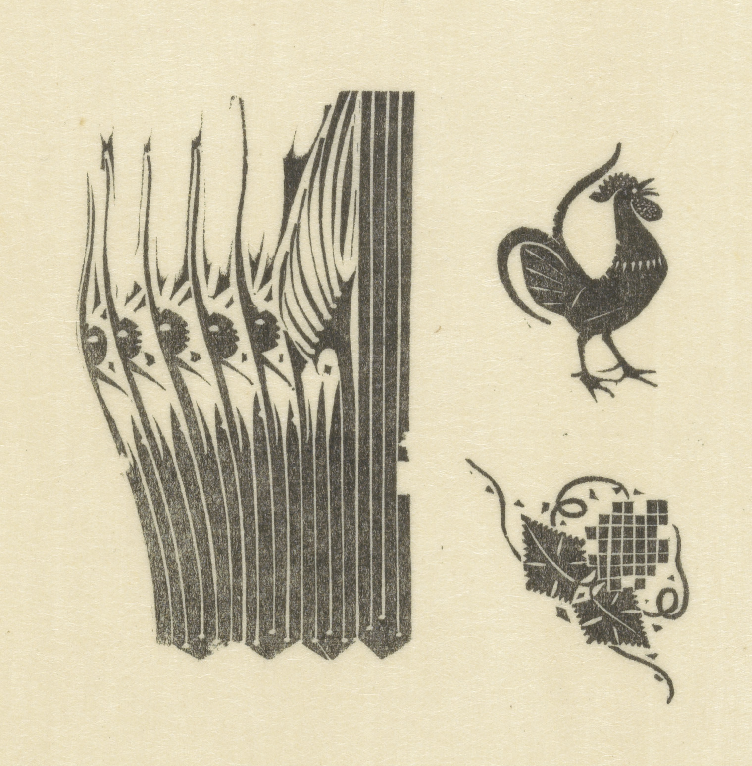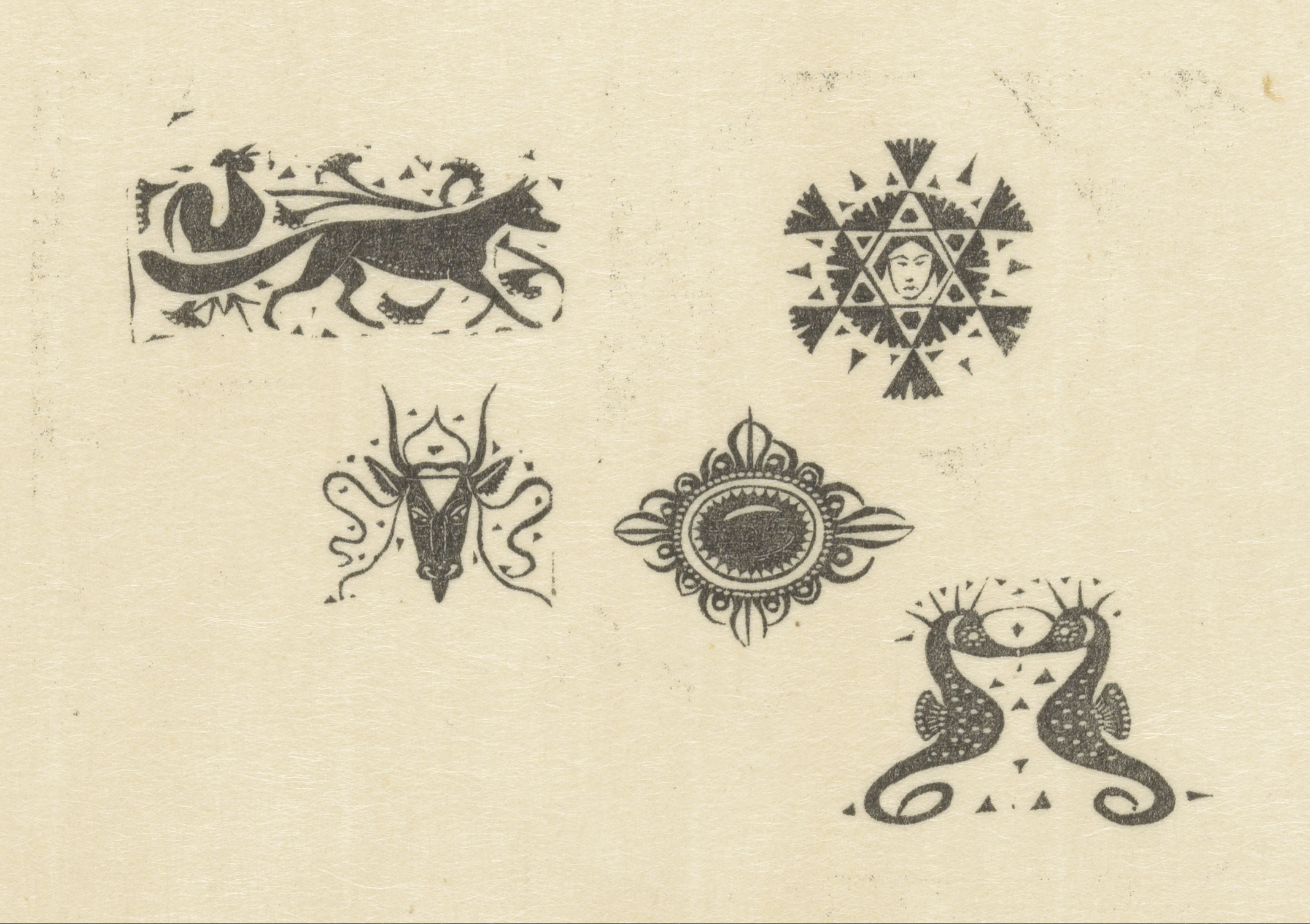 Vignetten met vos en haan, vrouwenhoofd, koeienhoofd...
