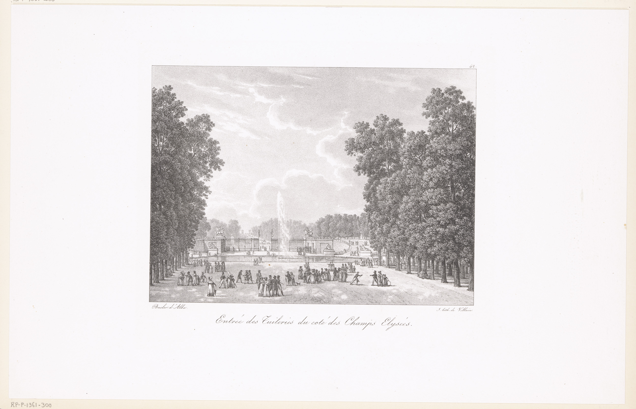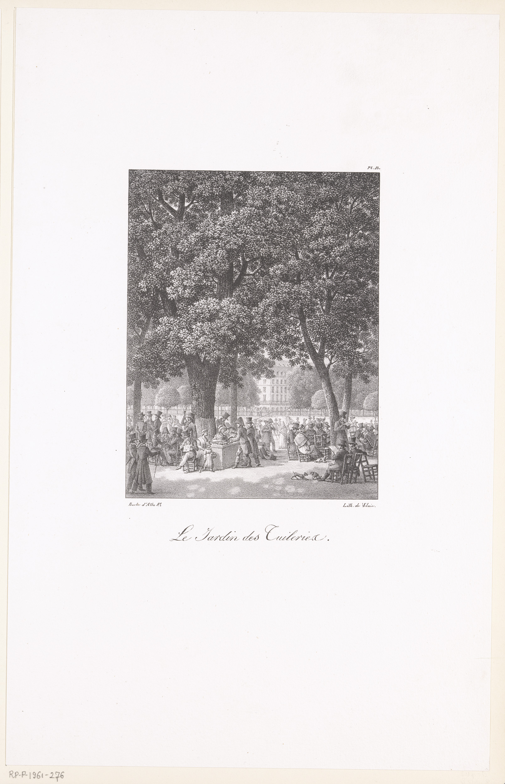 Wandelaars bij de ingang van de Tuin van de Tuileriën