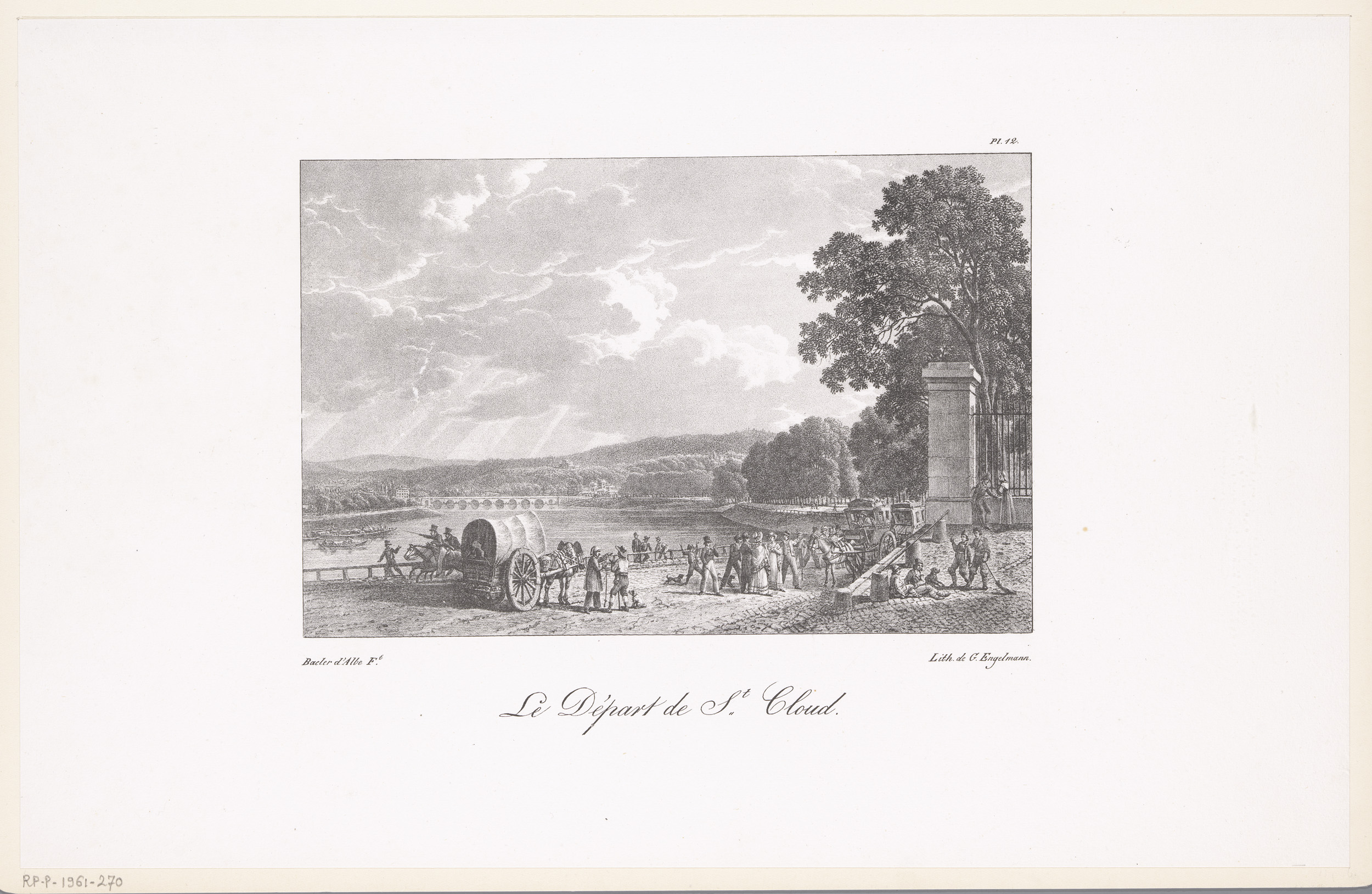 Koetsen en passagiers bij de halte van Saint-Cloud a...