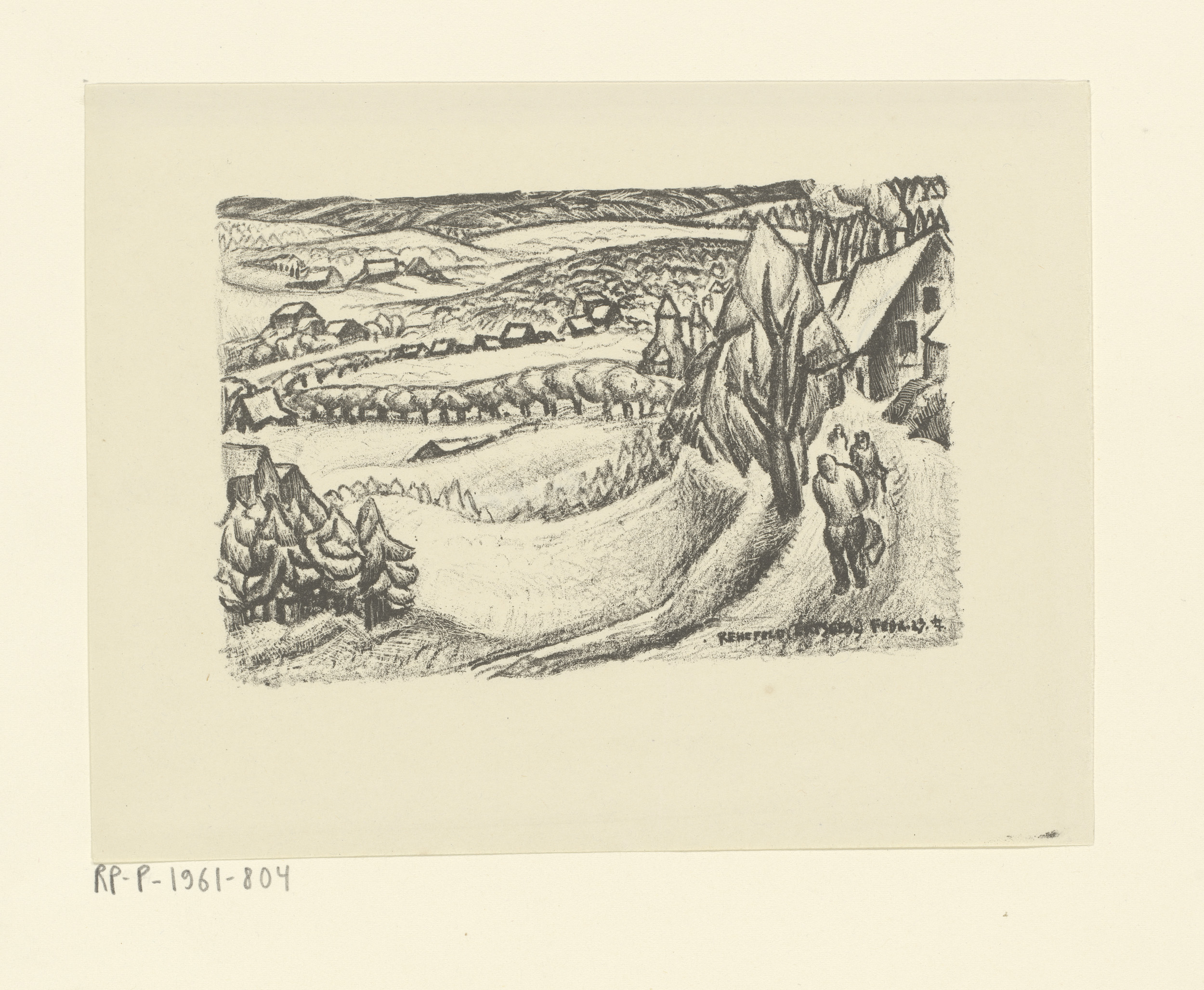 Landschap met man en vrouw in klederdracht uit Pietr...