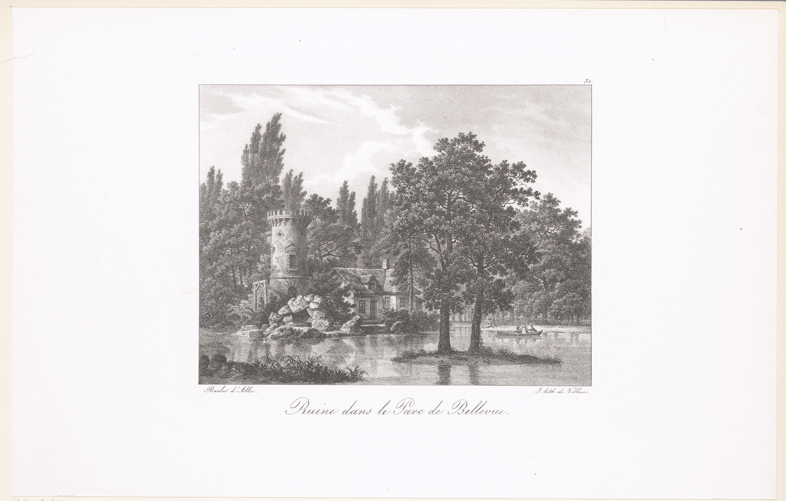 Ruïne aan het water in het Parc de Bellevue bij Meudon