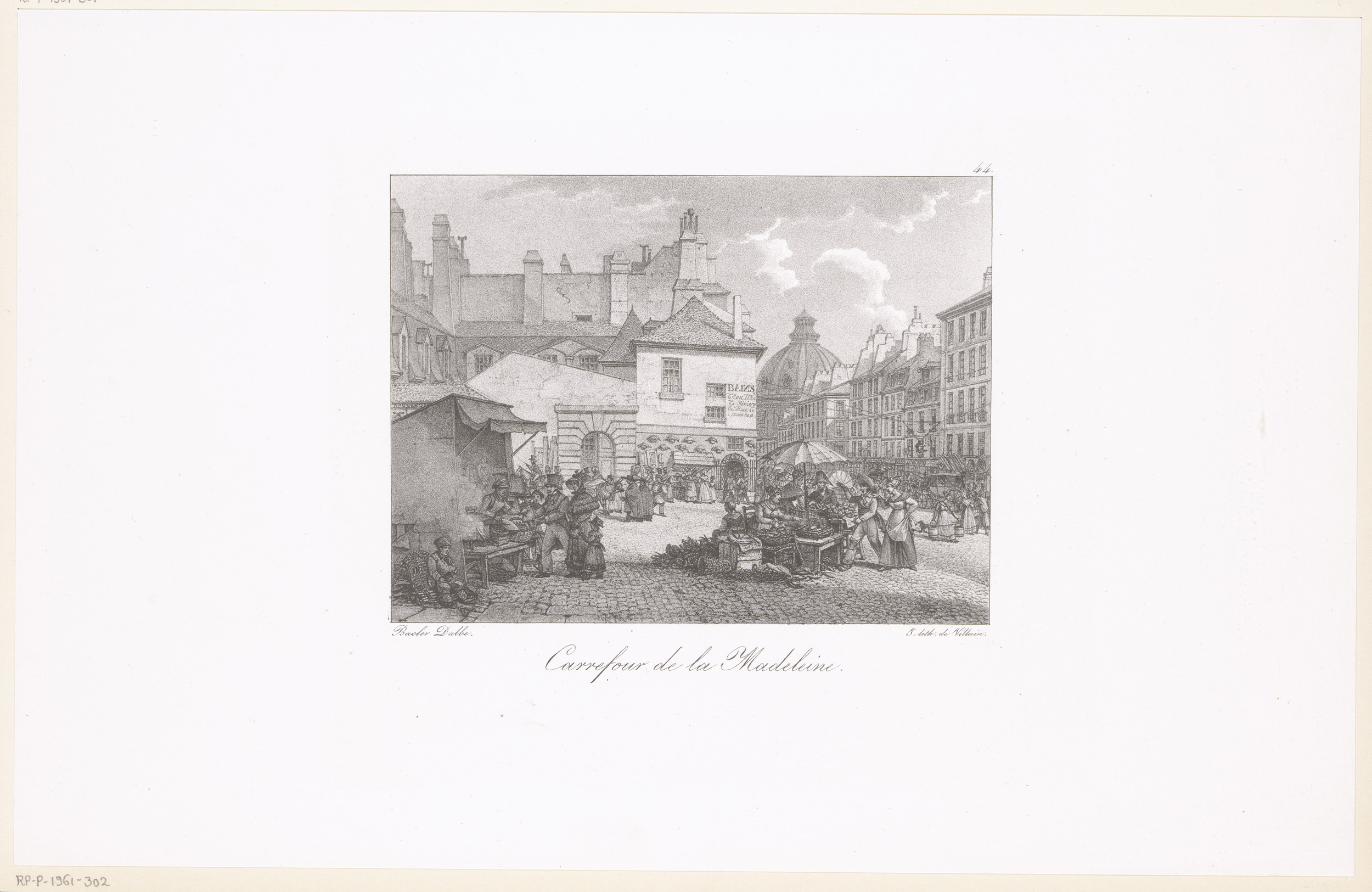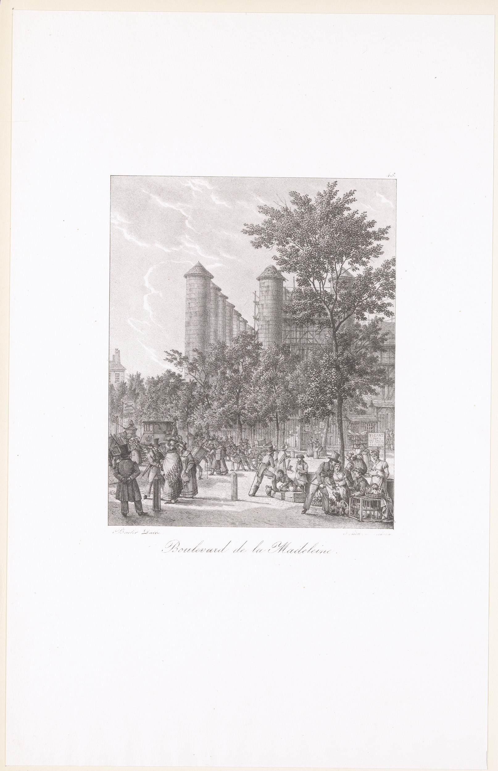 Straatventers, wandelaars en reizigers op de Bouleva...
