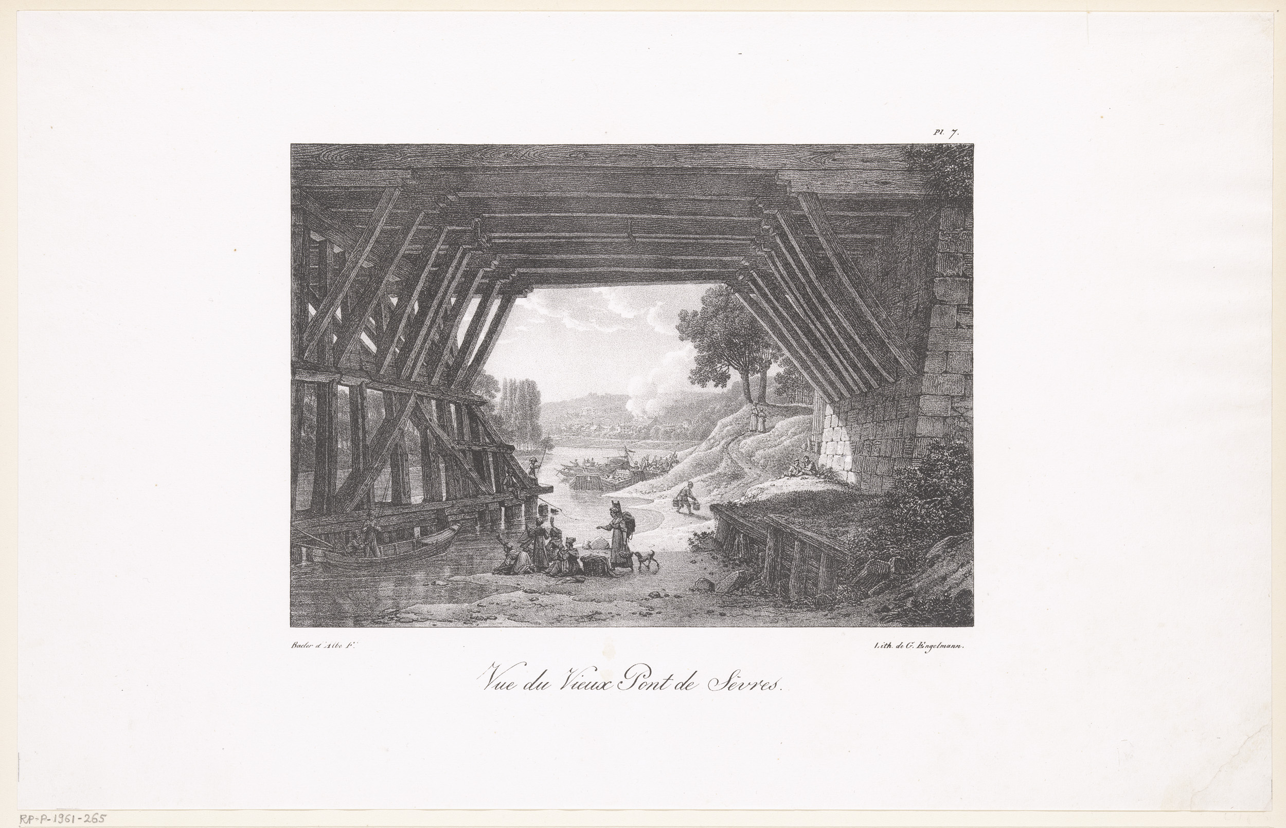 Vrouwen wassen in de Seine onder de oude Pont de Sèvres