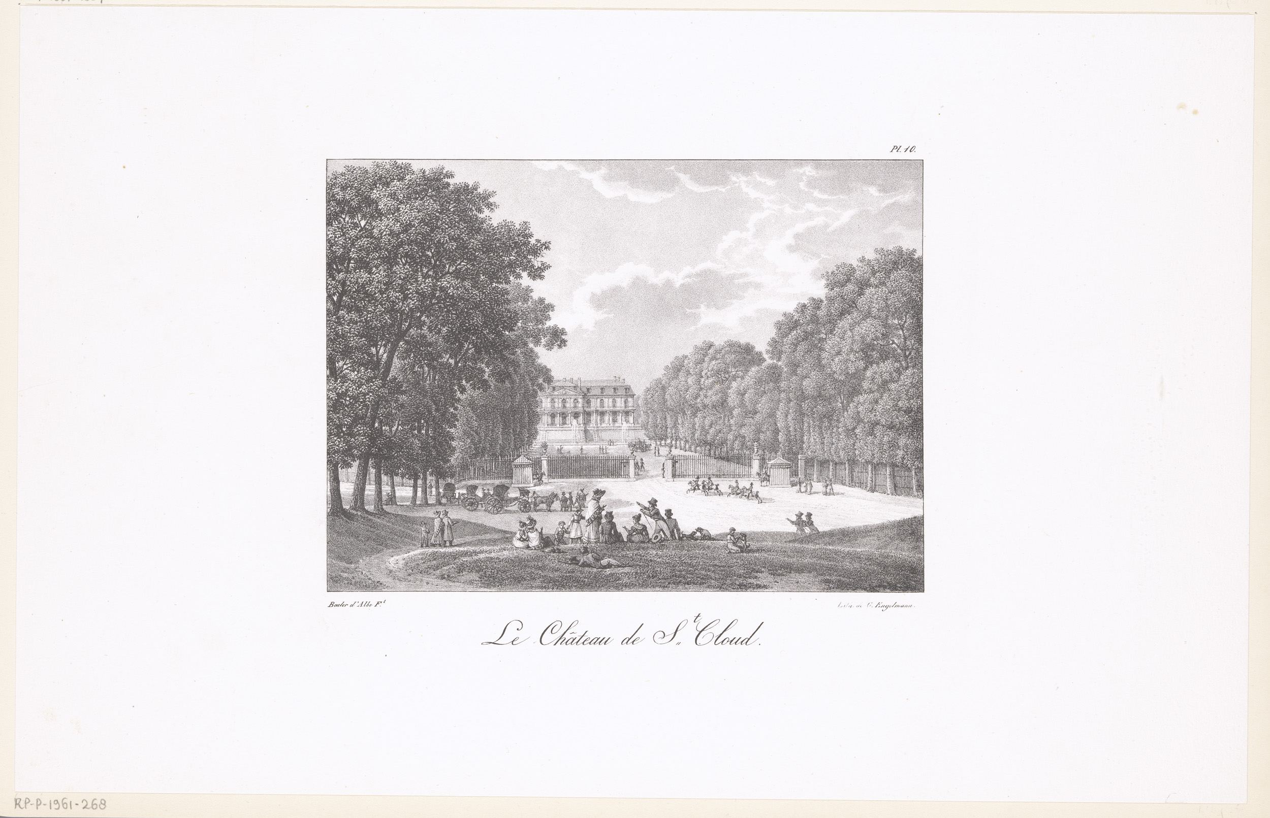 Zicht op het Kasteel van Saint-Cloud vanuit het park
