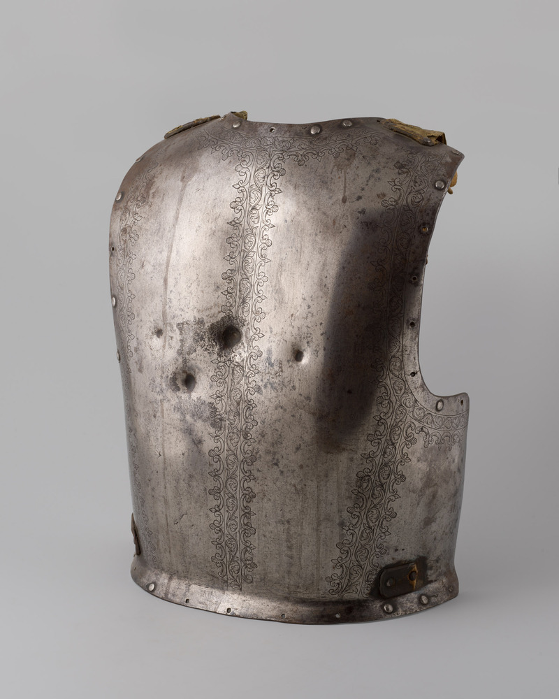Rug van een kuras met graveringen