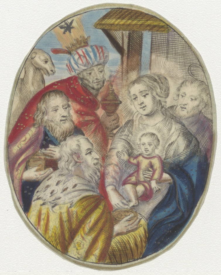 Aanbidding der koningen, rond geknipt, ingekleurd