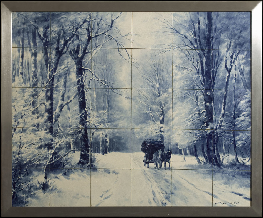 Tegeltableau met winters landschap naar een schilder...